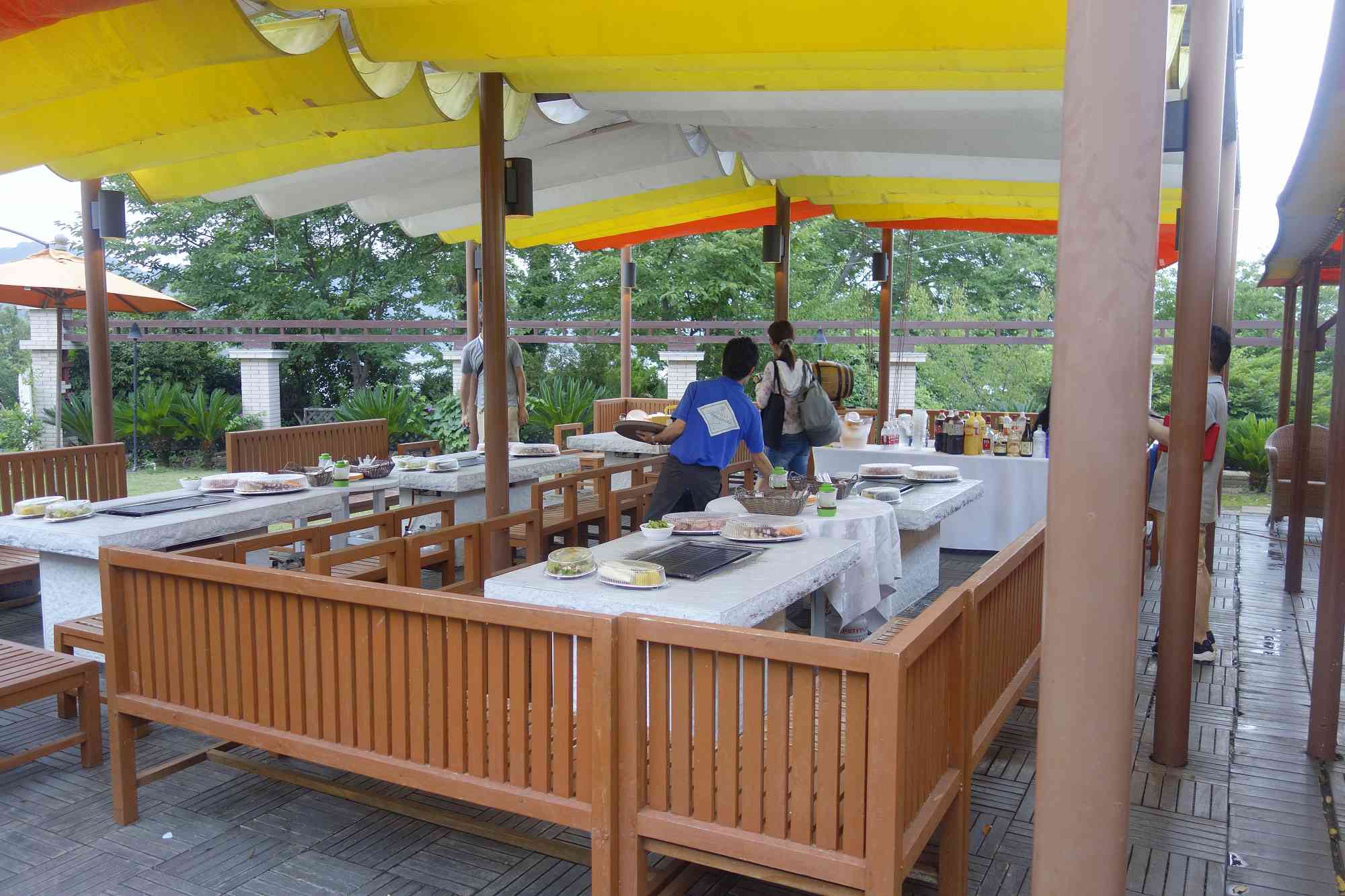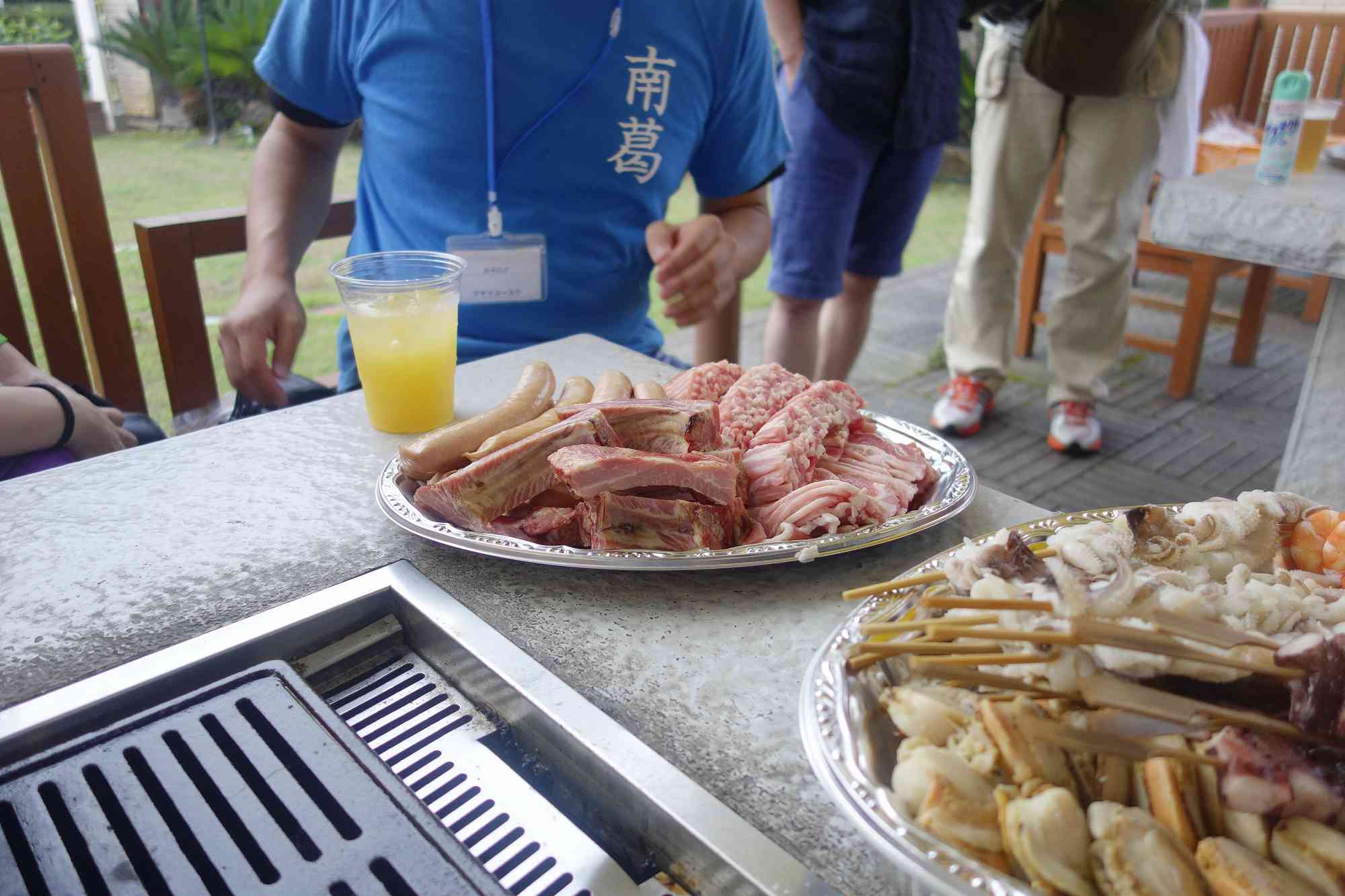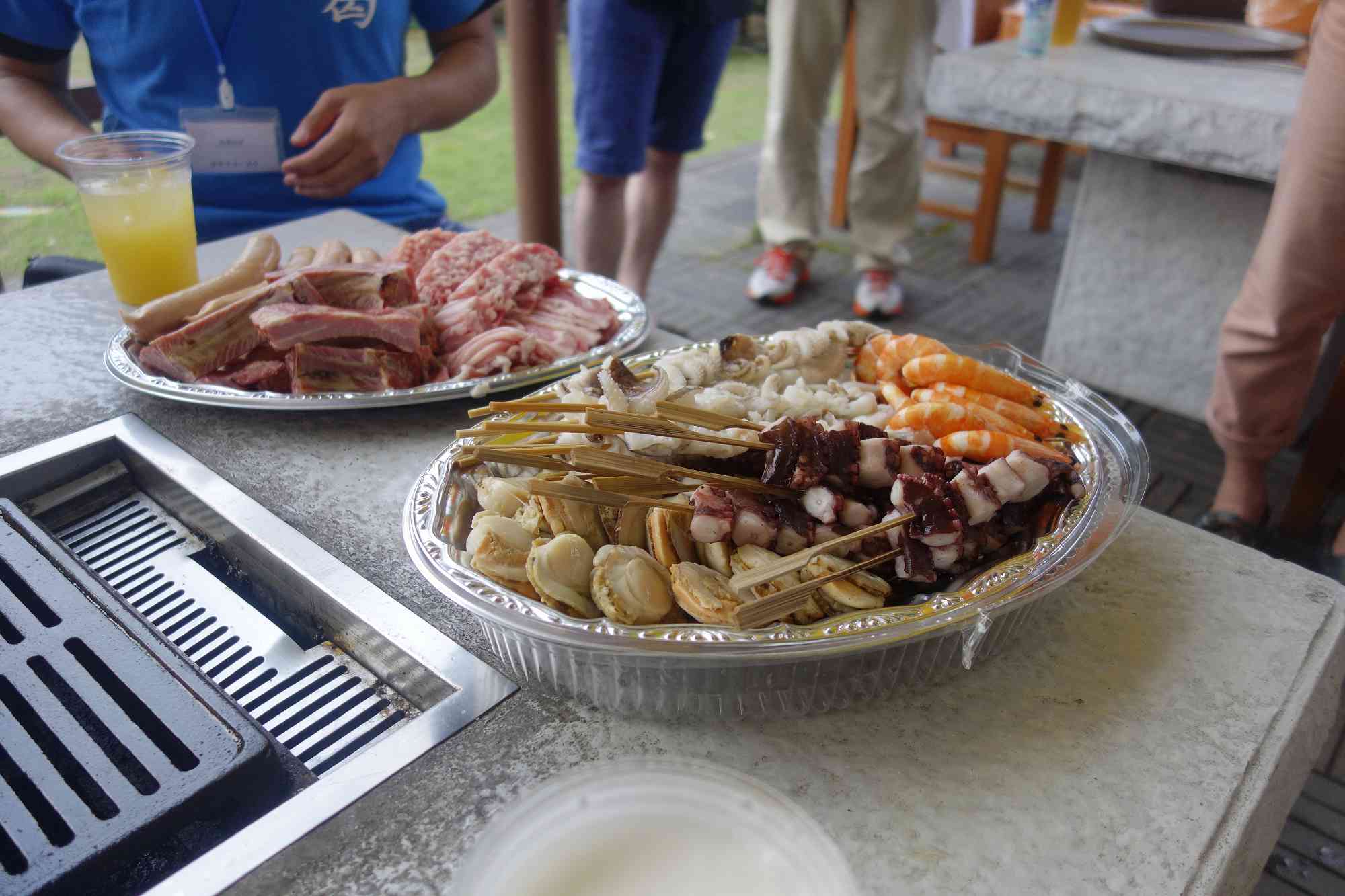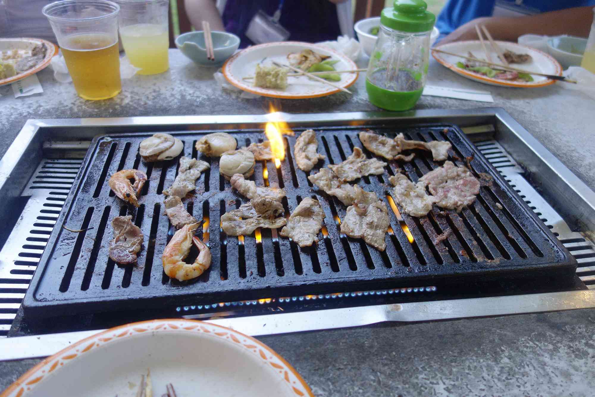 席には着々と肉や魚が準備されている最中に席につくと
