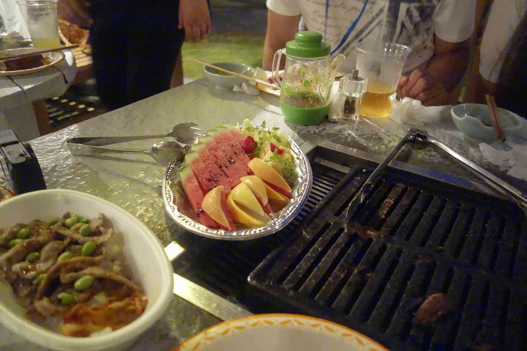 様々な食材を焼き焼きして頂いた後は、デザート代わりの果物が運ばれ