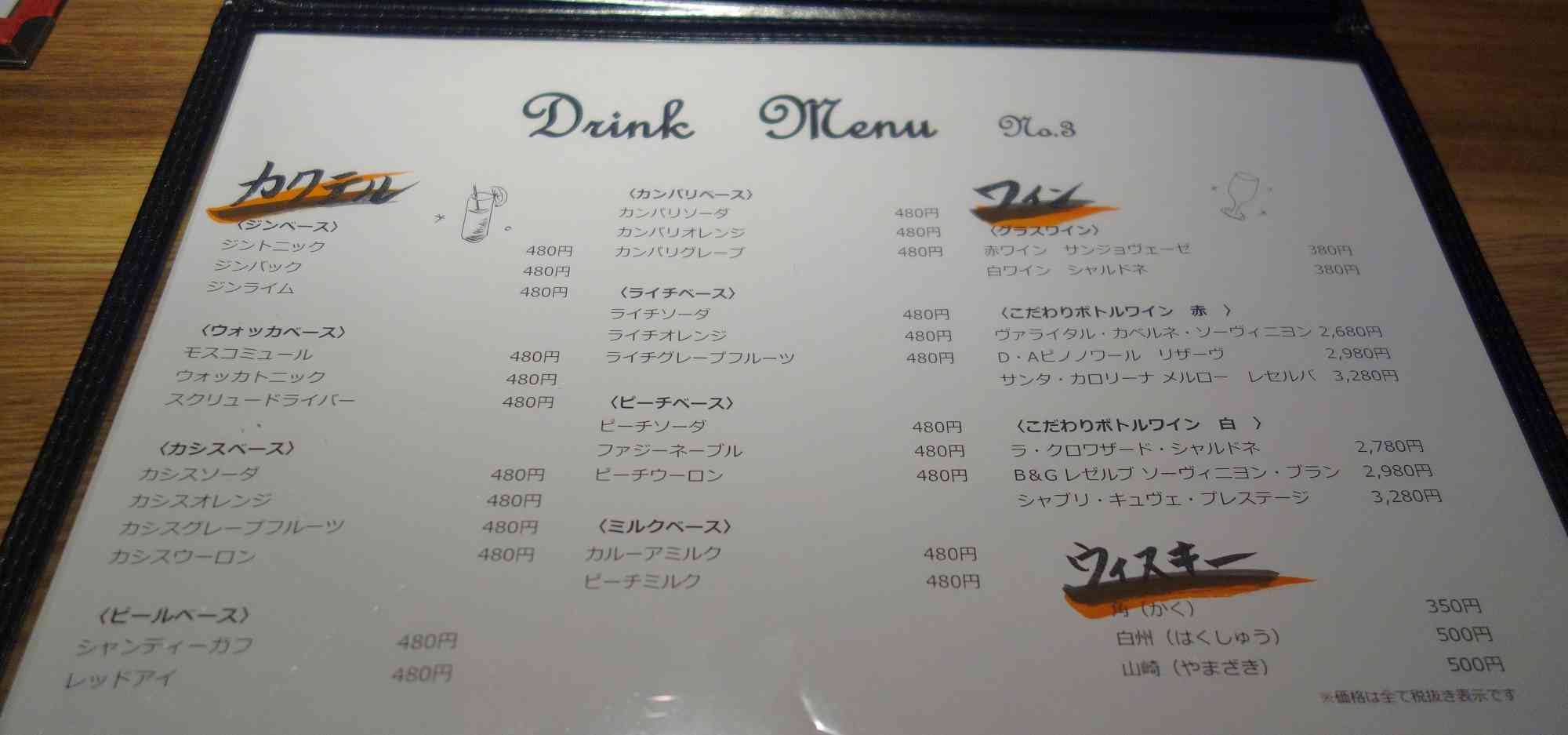 フレッシュフルーツカクテル、白州を使った各種飲み物でメニューは以上です。