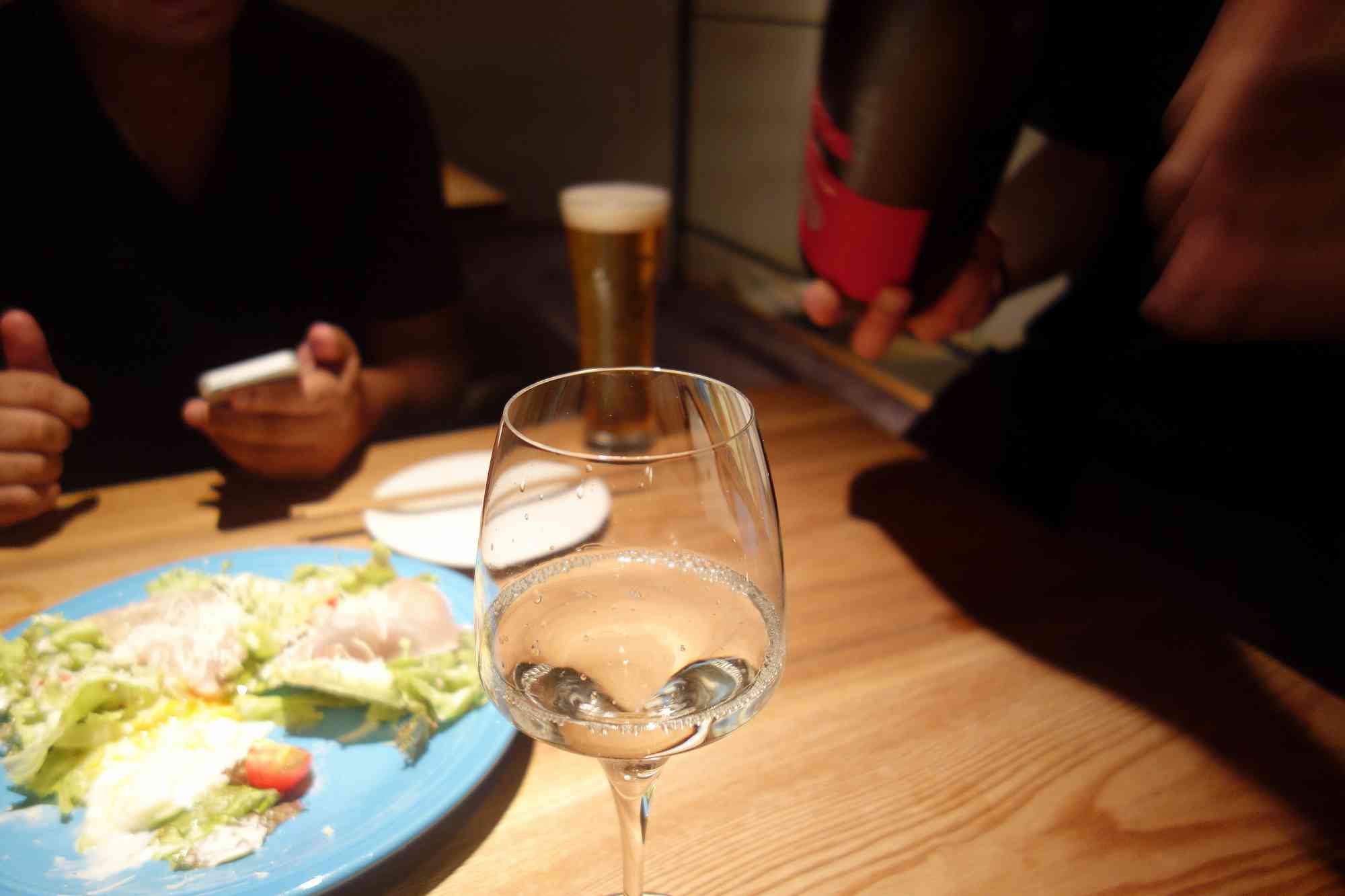 まずは泡物と言うことで、こぼれスパークリング澪500円を注文し