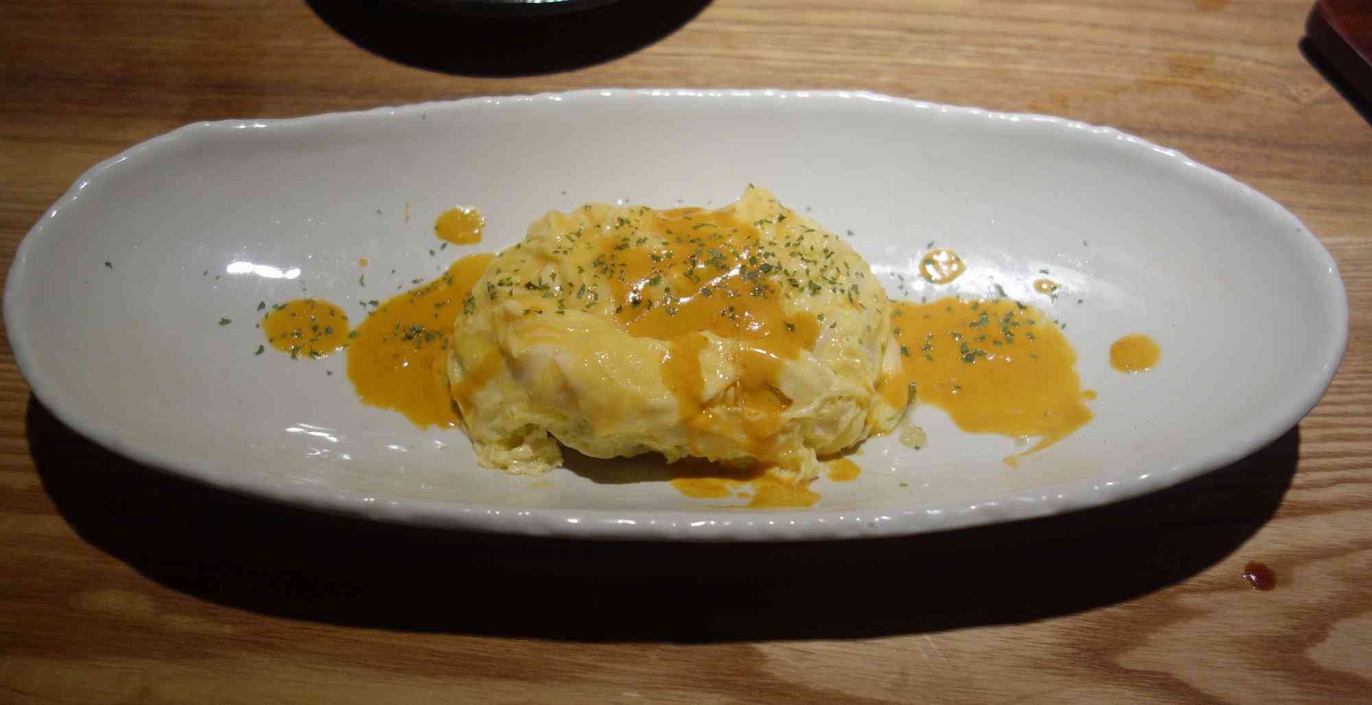 少し柔らかいイメージでちんまりしていると言いたい雲丹ソースの半熟オムレツ780円を注文し