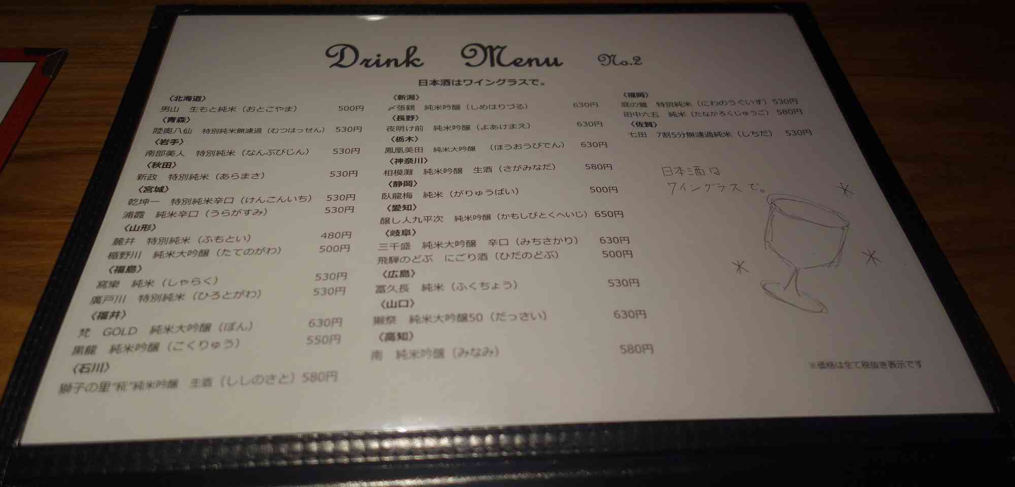 新政特別純米(クリムゾンラベル)530円があったので注文する事にしました。
