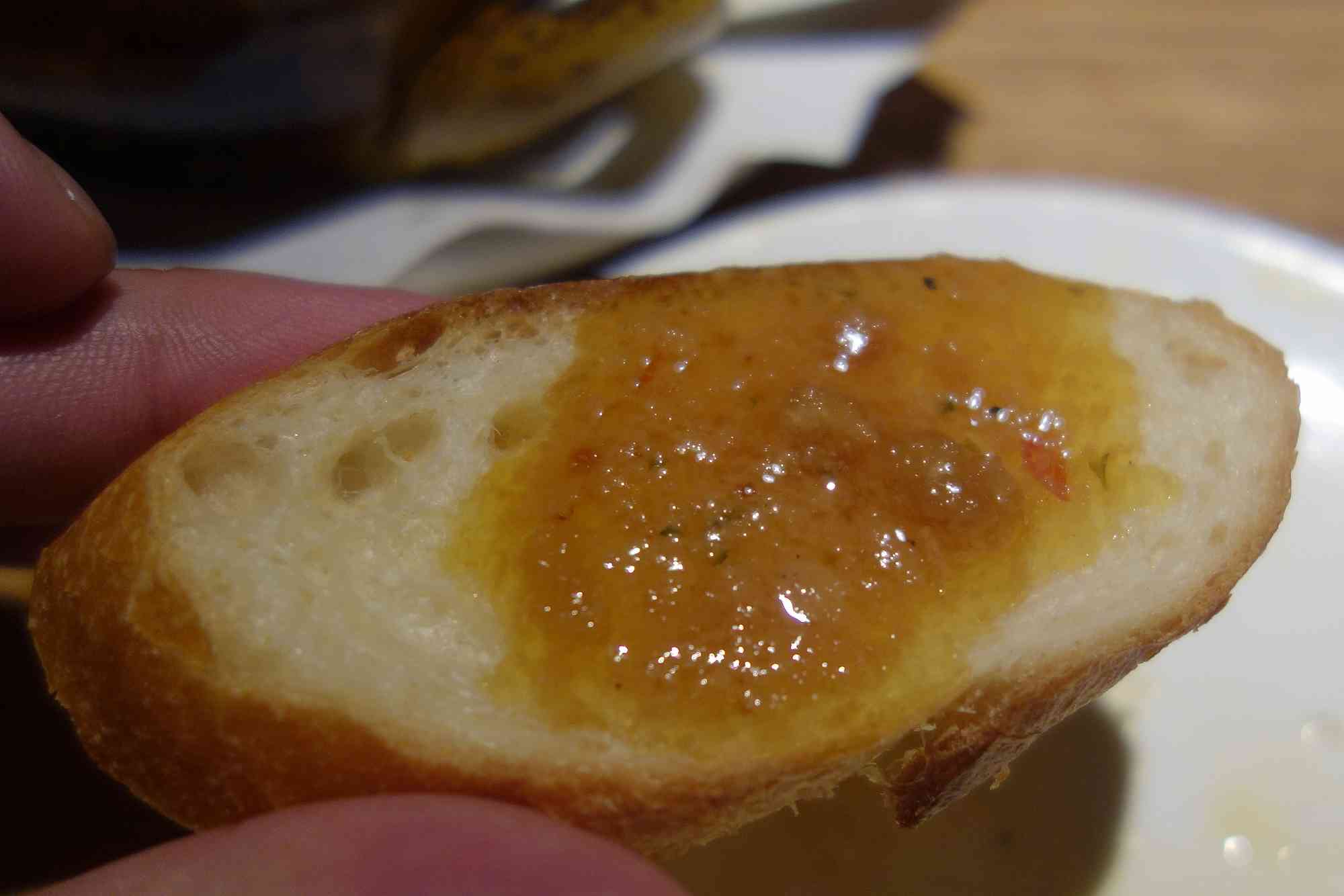 バケットに味噌風味オイルをつけて頂くとなかなか美味しく