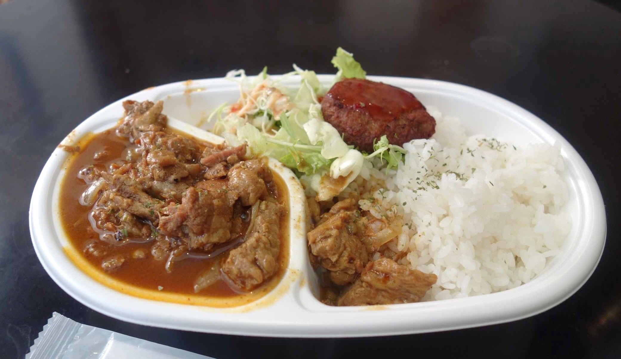 あの日行ったこんな店 「東京スパイシーワゴン」で、容器はチープながらも、牛すじカレー、豆腐ハンバーグともに味にチープさのない「牛すじマサラカレー」を食す!