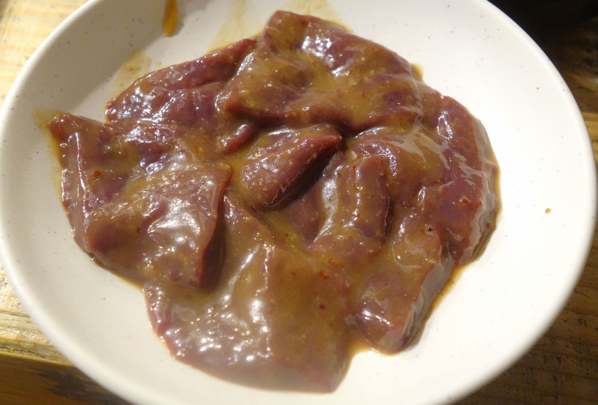 ラストはタレに丁寧に絡めたレバ皿800円をオーダーし