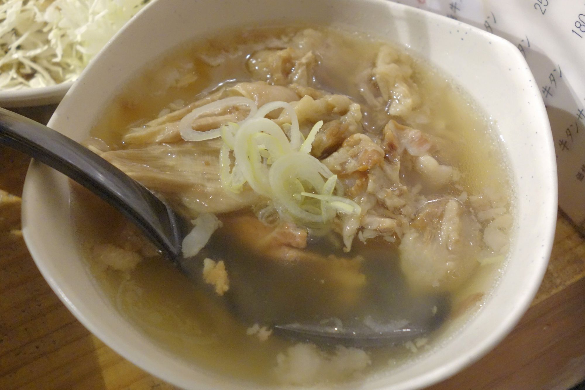 塩煮込みの中には熱々ウッマウマな出汁に加えて、お肉や柔らかく煮込まれたホルモンなどがたっぷり! こちらはボリューム感もあってかなりオススメです。