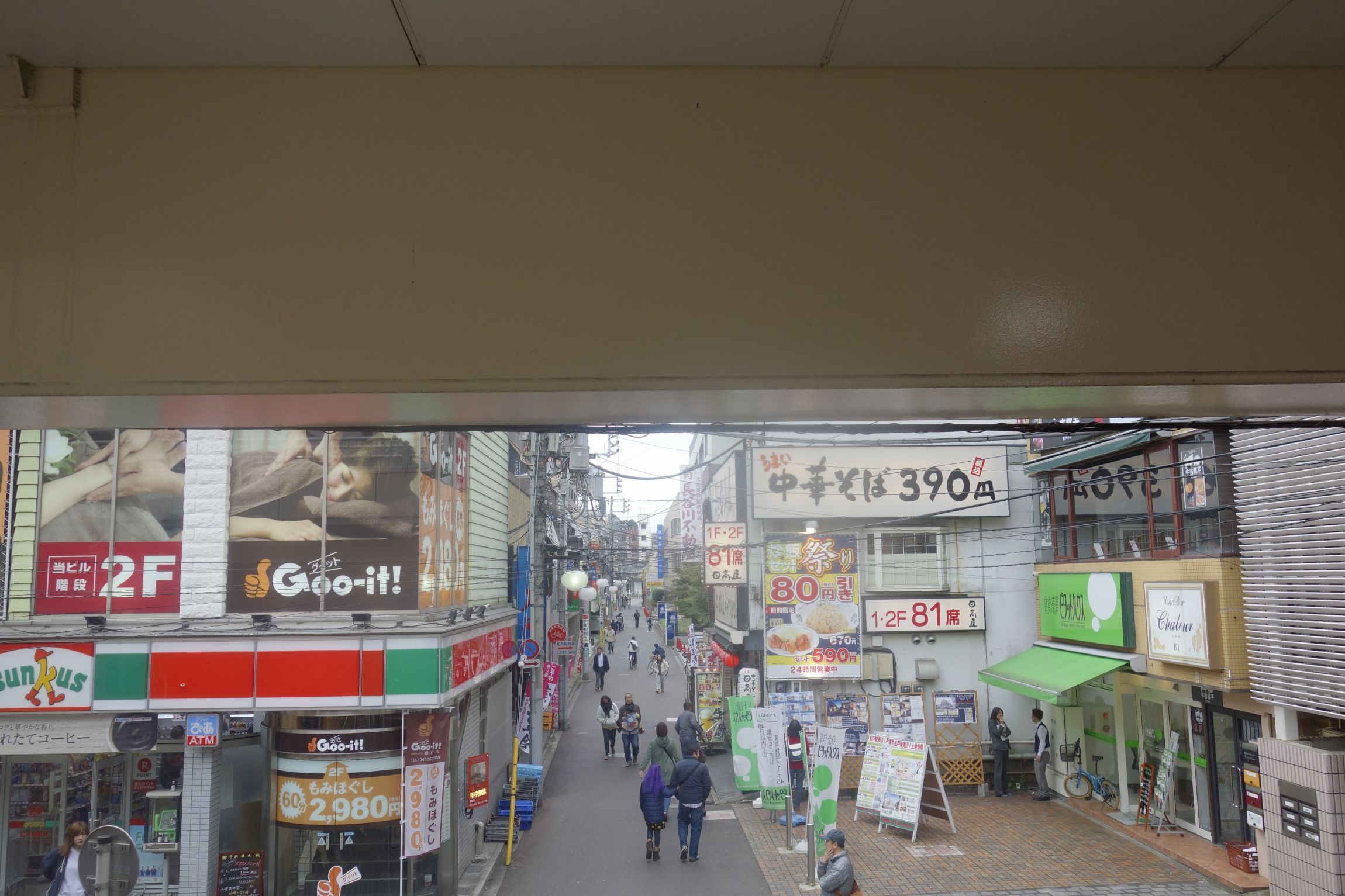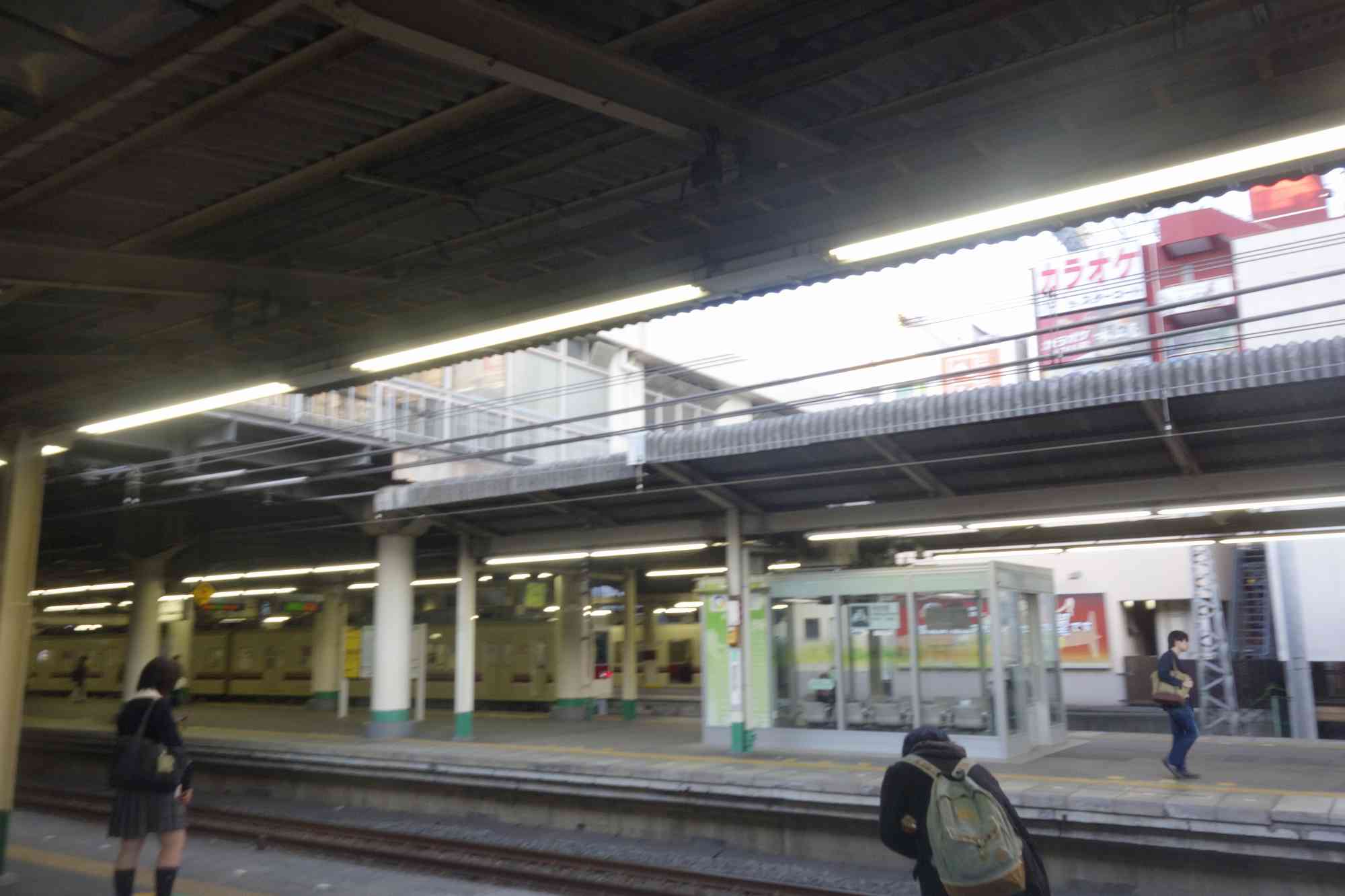 駅ホームから階段を登り切った後は