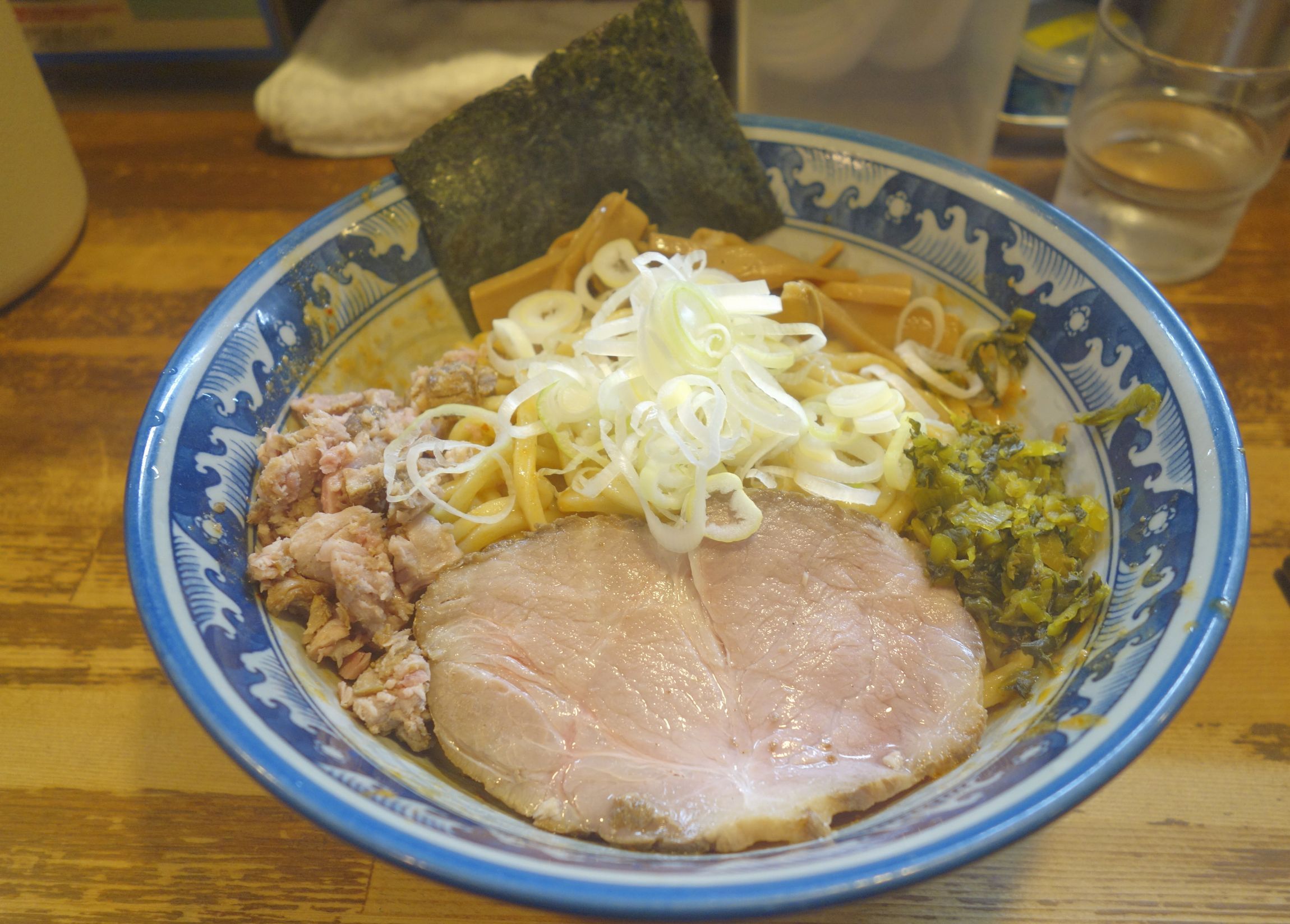 大きなチャーシューはしっとりとした食感でシンプルにうまい! 刻んだチャーシューも同じものを使用しているのか、お肉の旨味をシンプルに感じられてウマウマです。