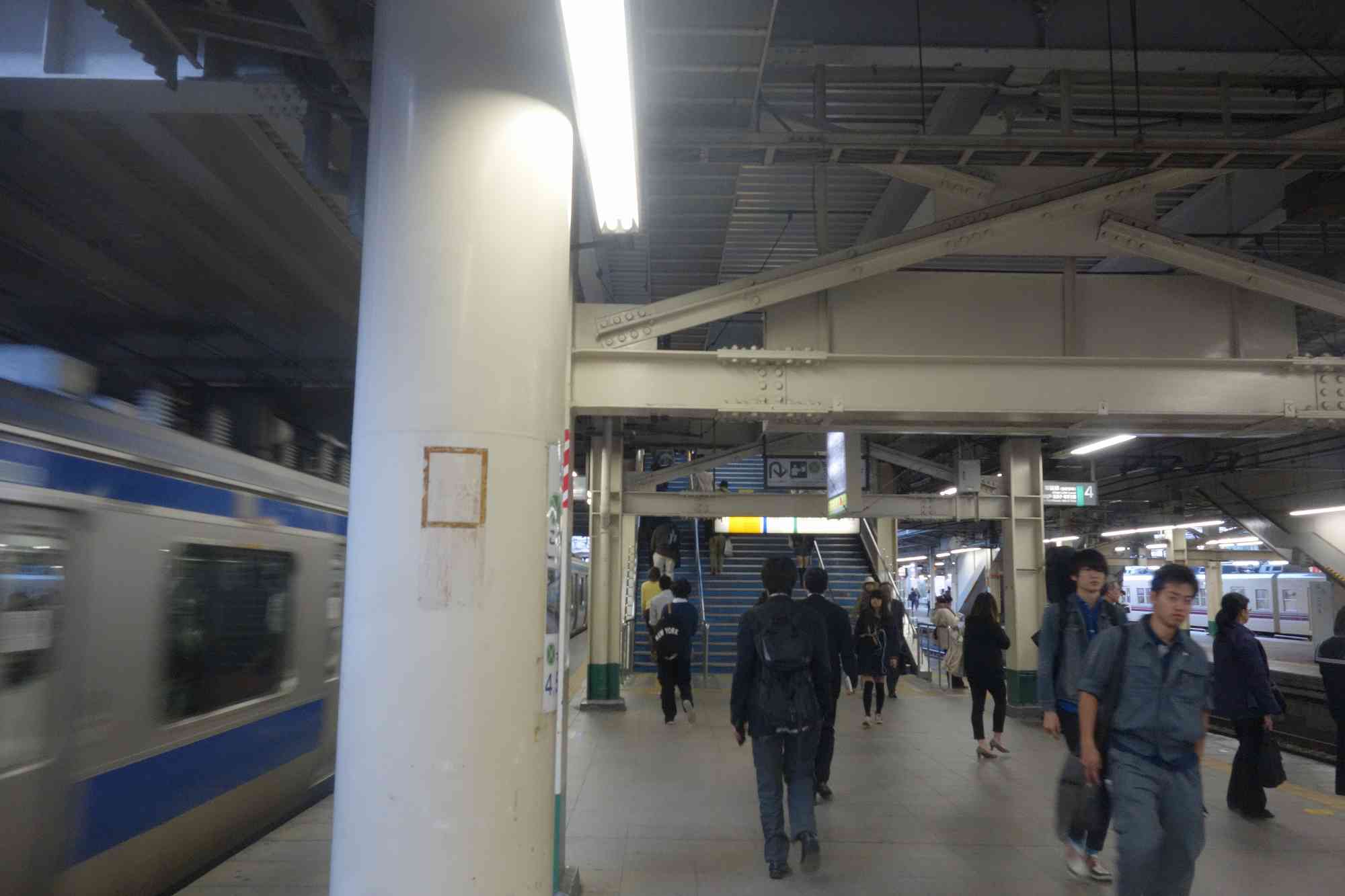 まずは、駅ホームを階段へと向けて移動します。