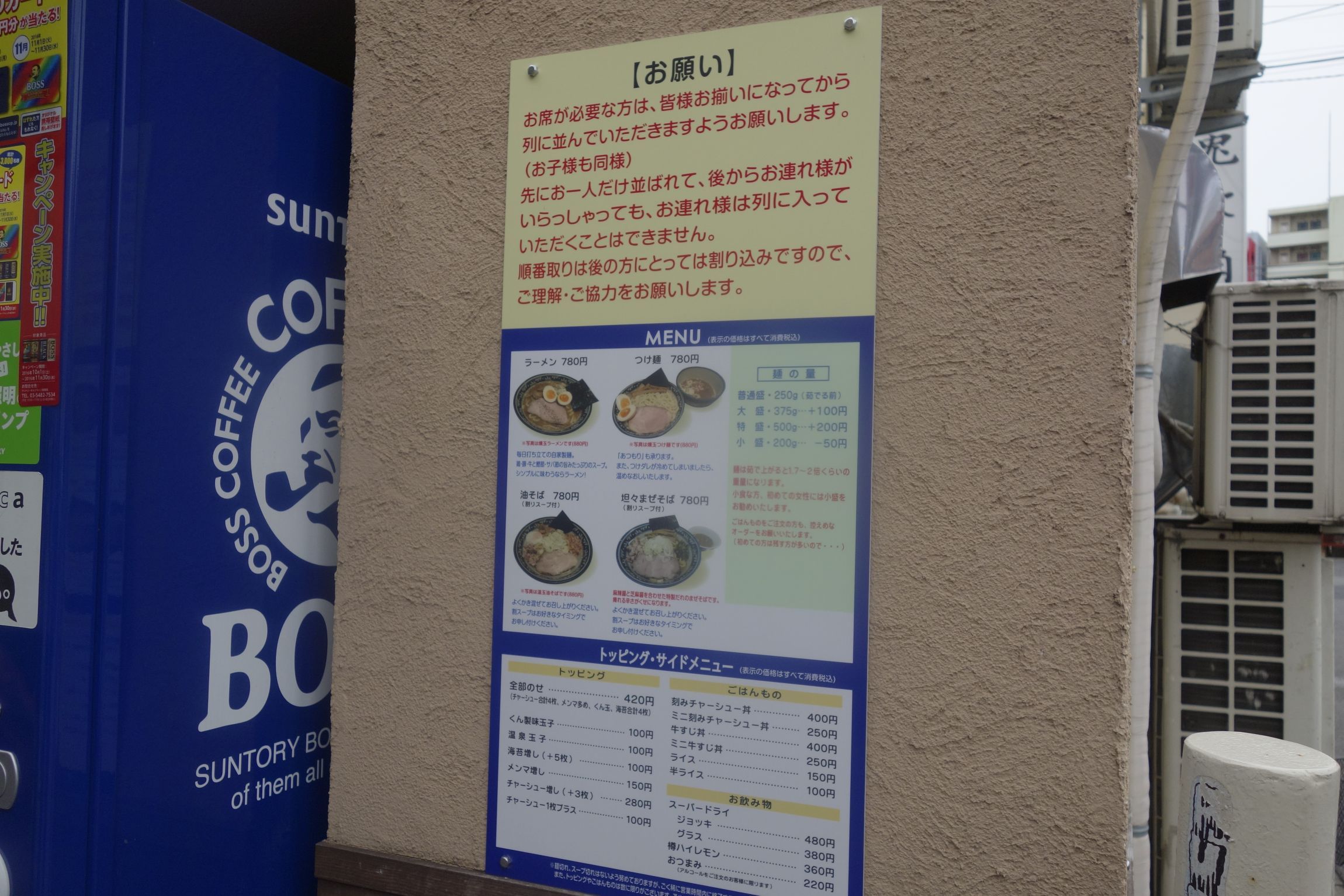 まずは外でメニューと、並び方のルールを確認し