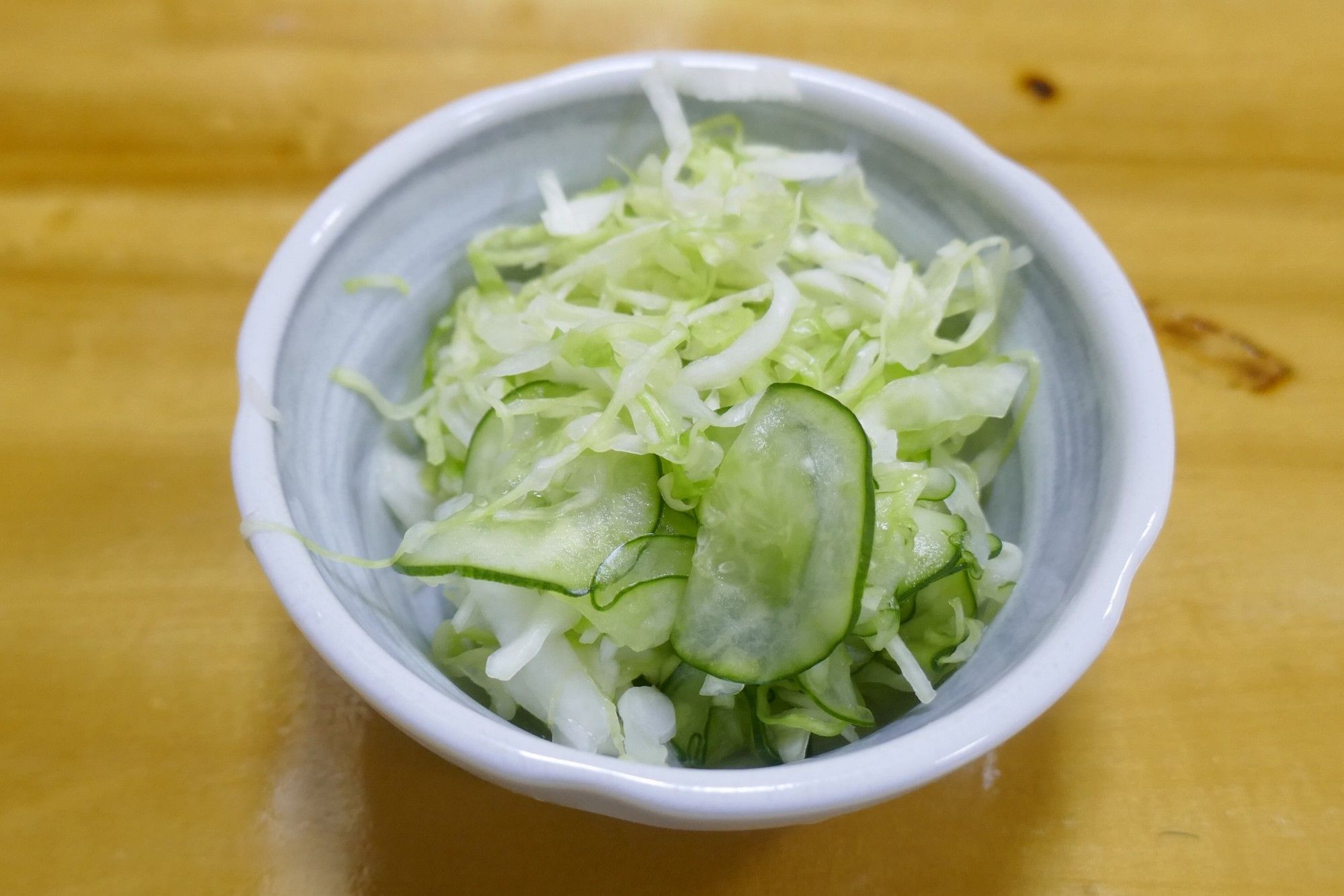 まずは、塩気強めでキャベツの食感が活きたお新香をつまみつつ