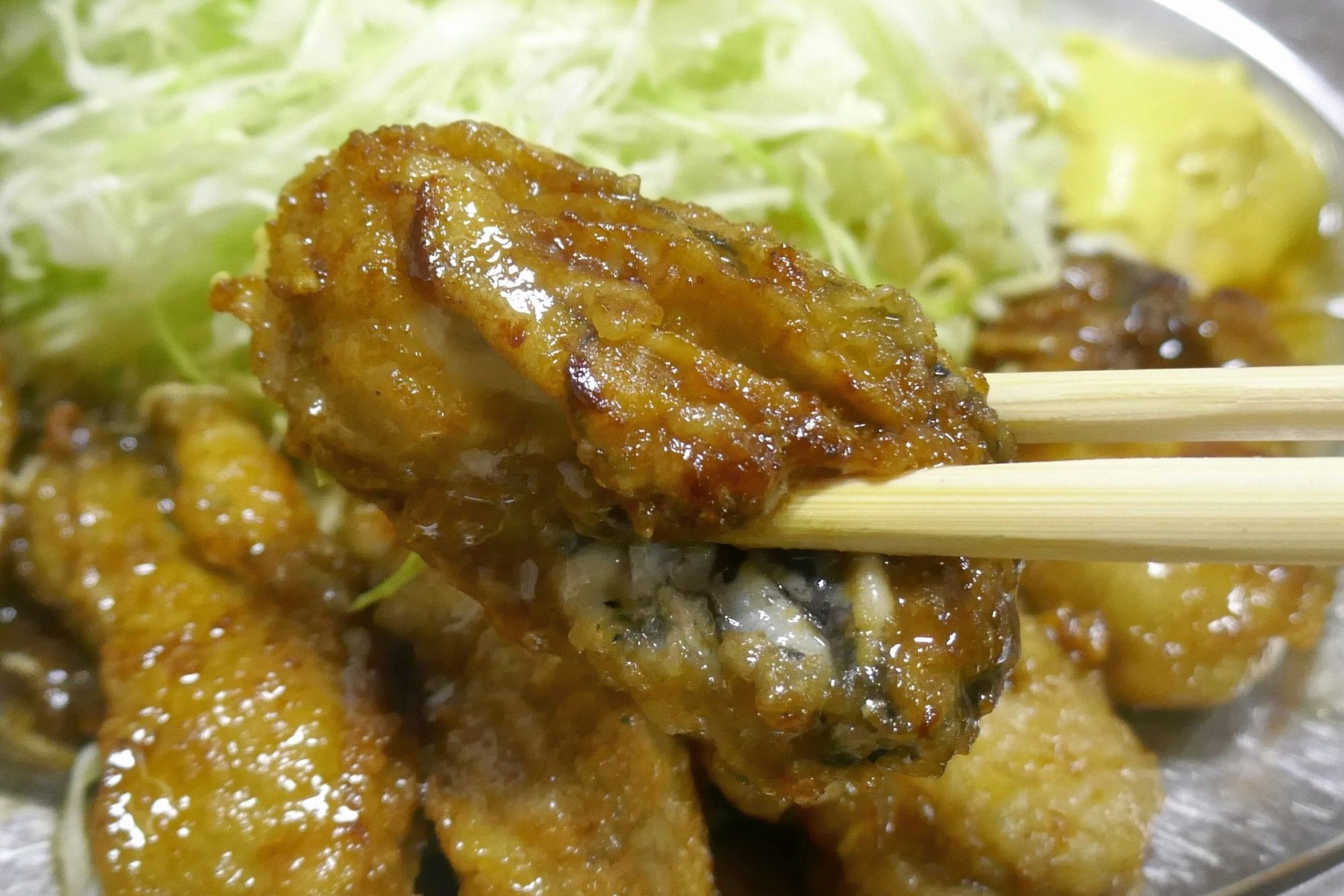 早速、「カキバター焼き」を食べてみると、プリプリ食感かつジューシーな旨味に満ちたカキに、しょうゆの塩気と旨味、バターの円やかな風味に加えて、隠し味に使用しているラードのパワフルなコクが効いてメチャウマ!