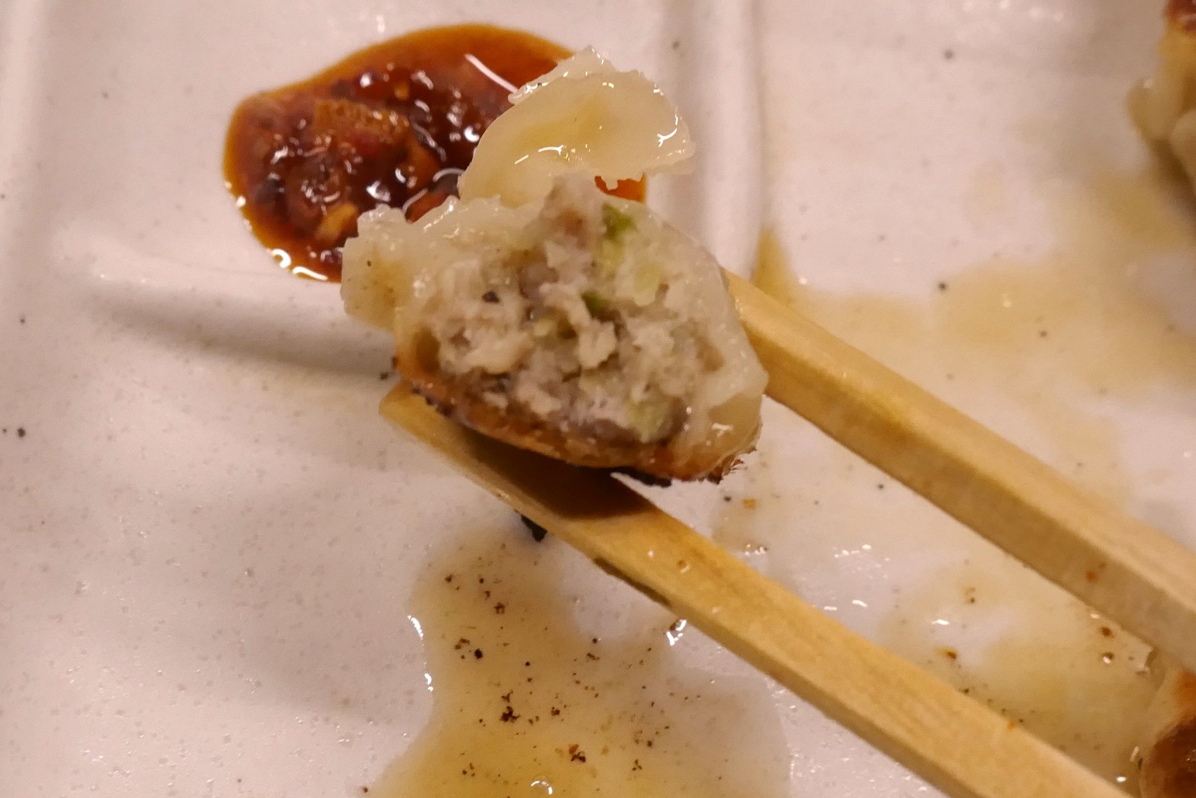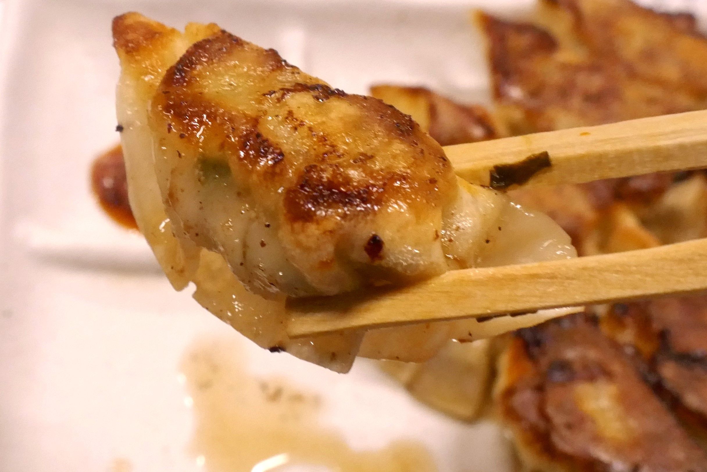 1つ1つが大きな餃子なので、箸で持ち上げると重量感満点!