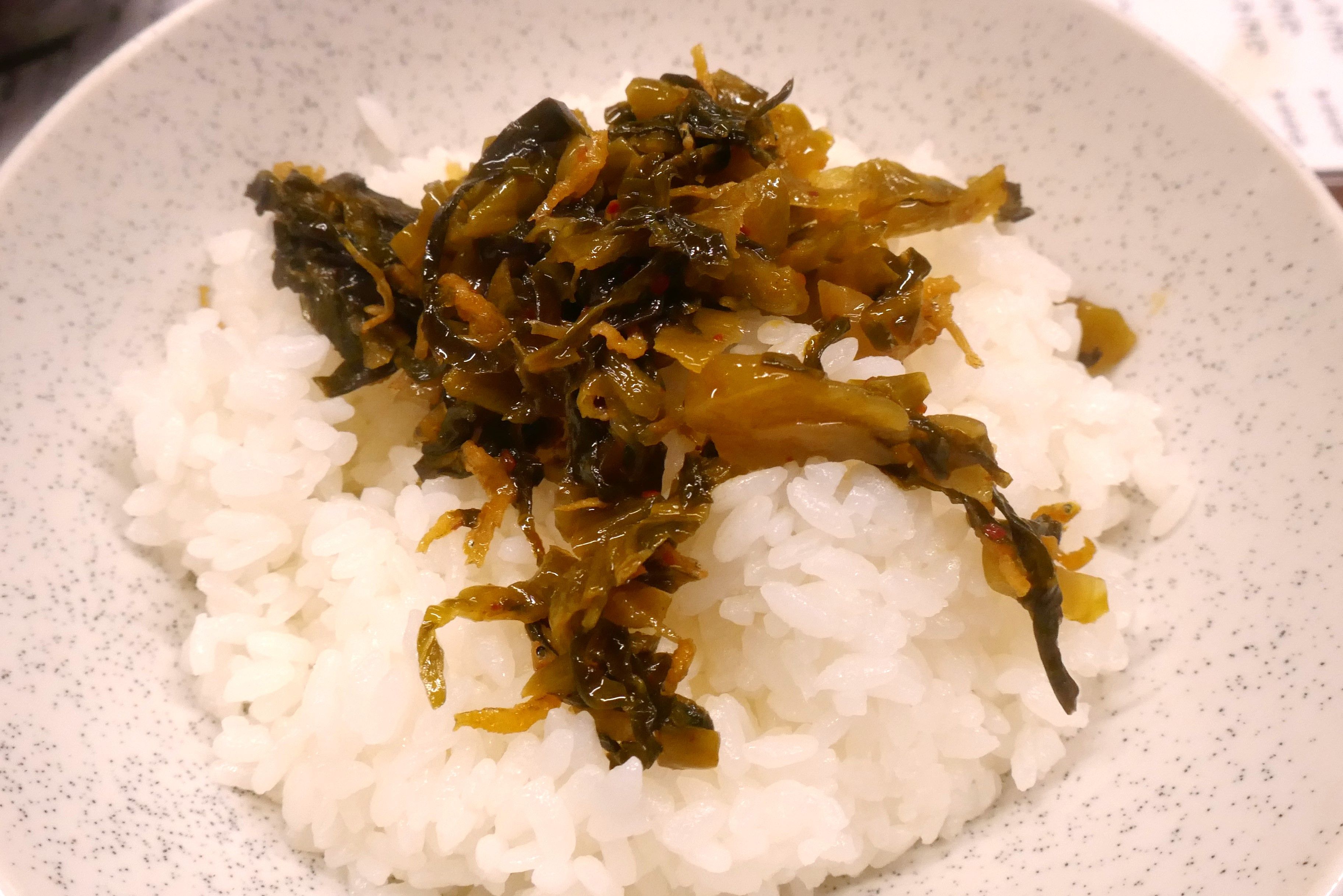 まだ、最初に出てきた「辛子高菜」が余っていたので「白米」の上に投下!