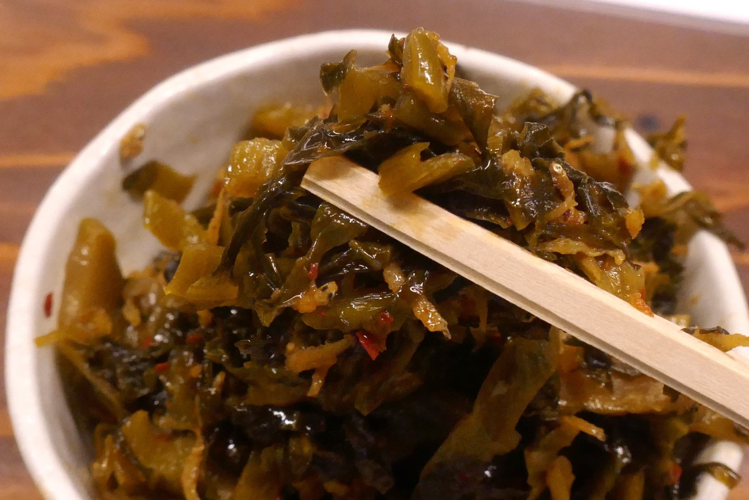 「辛子高菜」は、ピリッと辛い高菜に加えて、カリッとした食感と旨味に満ちたしらすが入ってお酒が恋しくなるウマさ!