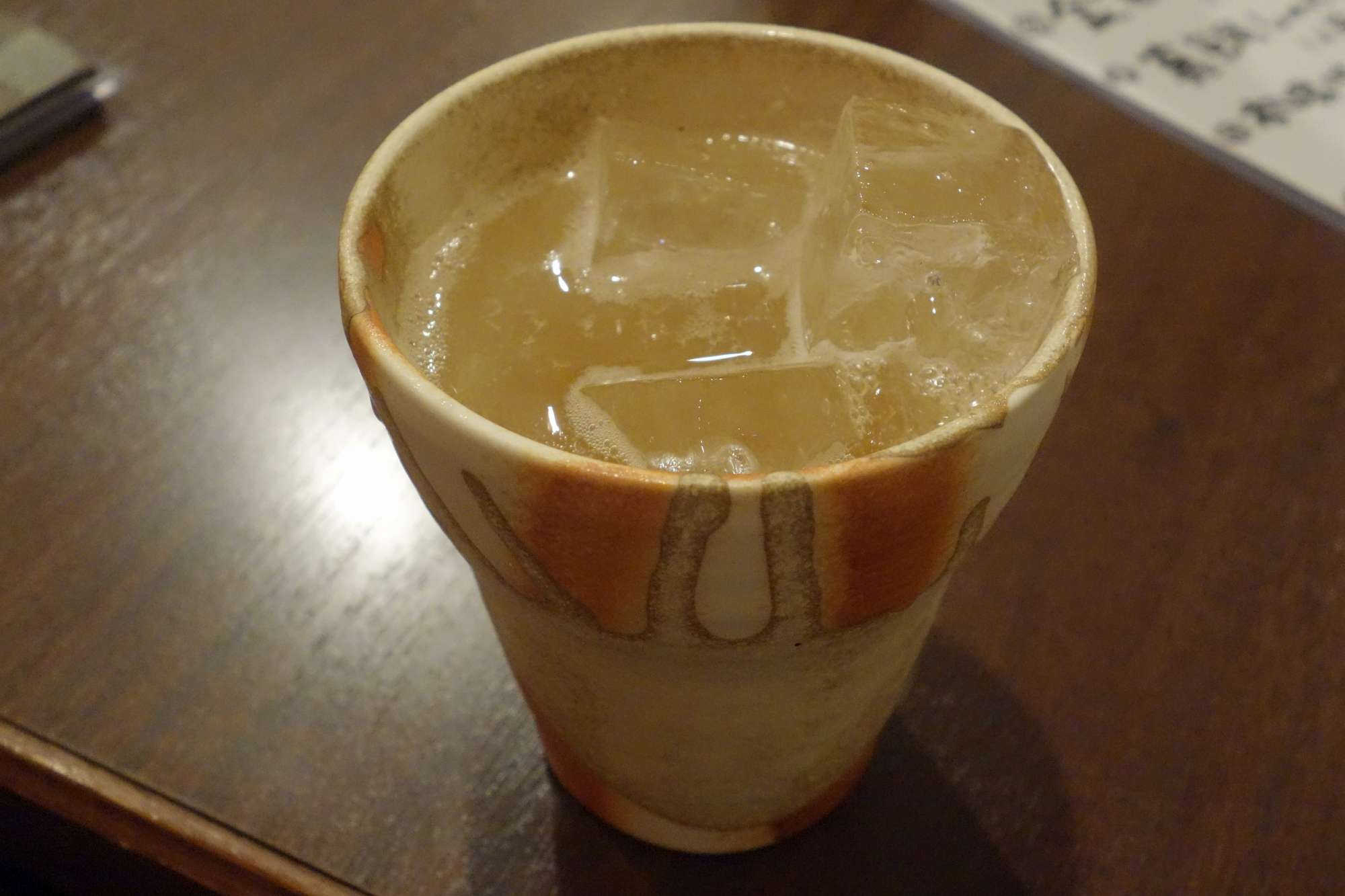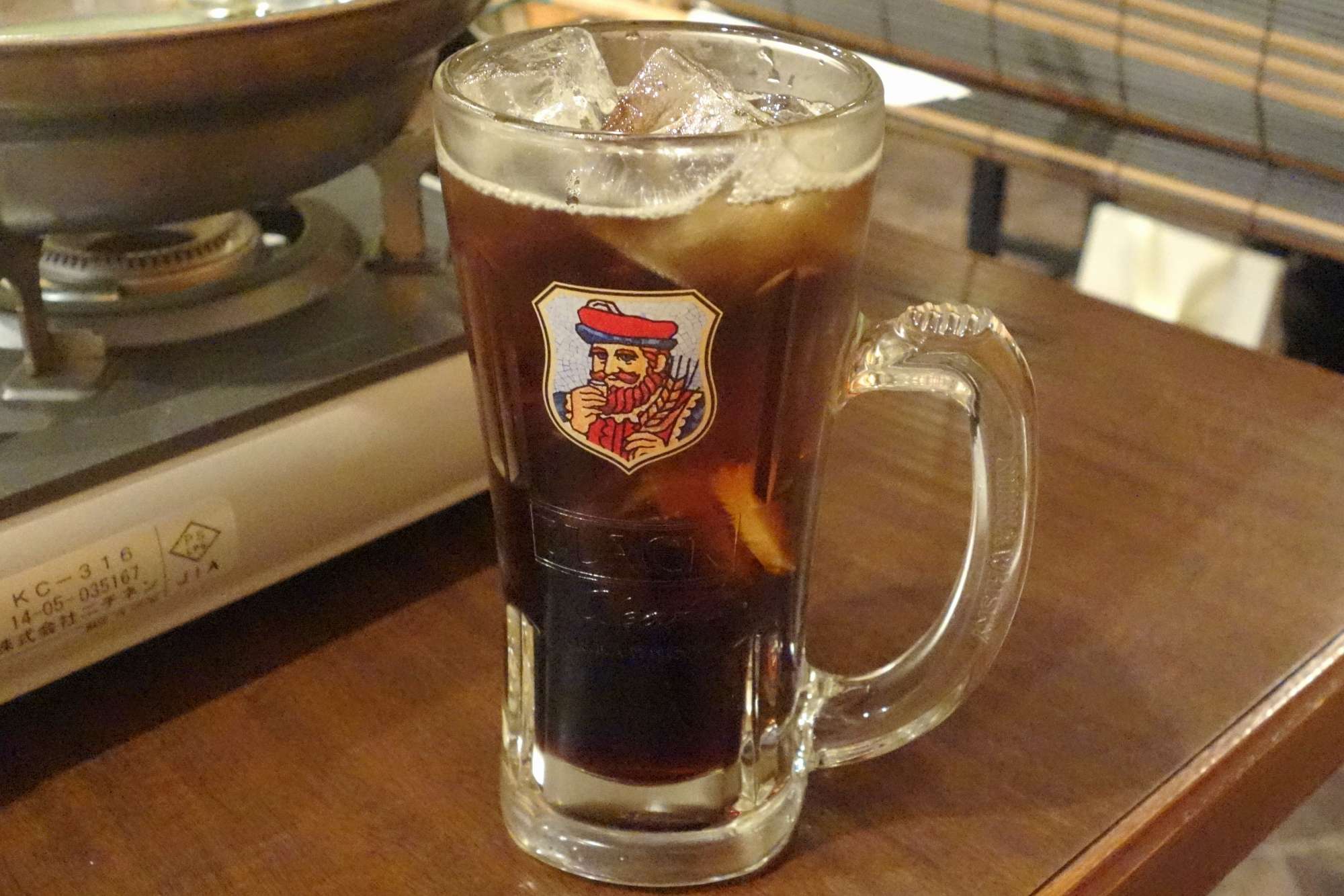 火が通る間、甘くキリッとしたコーラハイボール530円を飲み