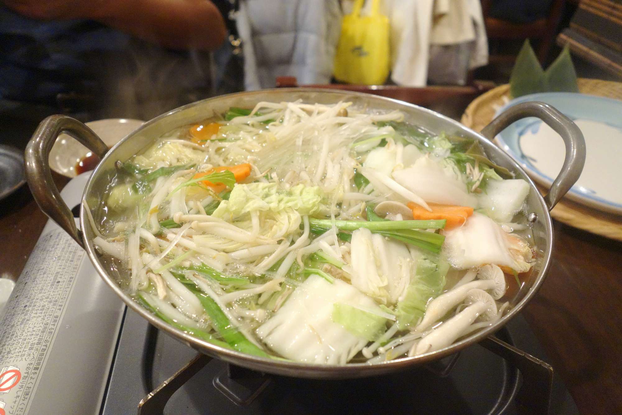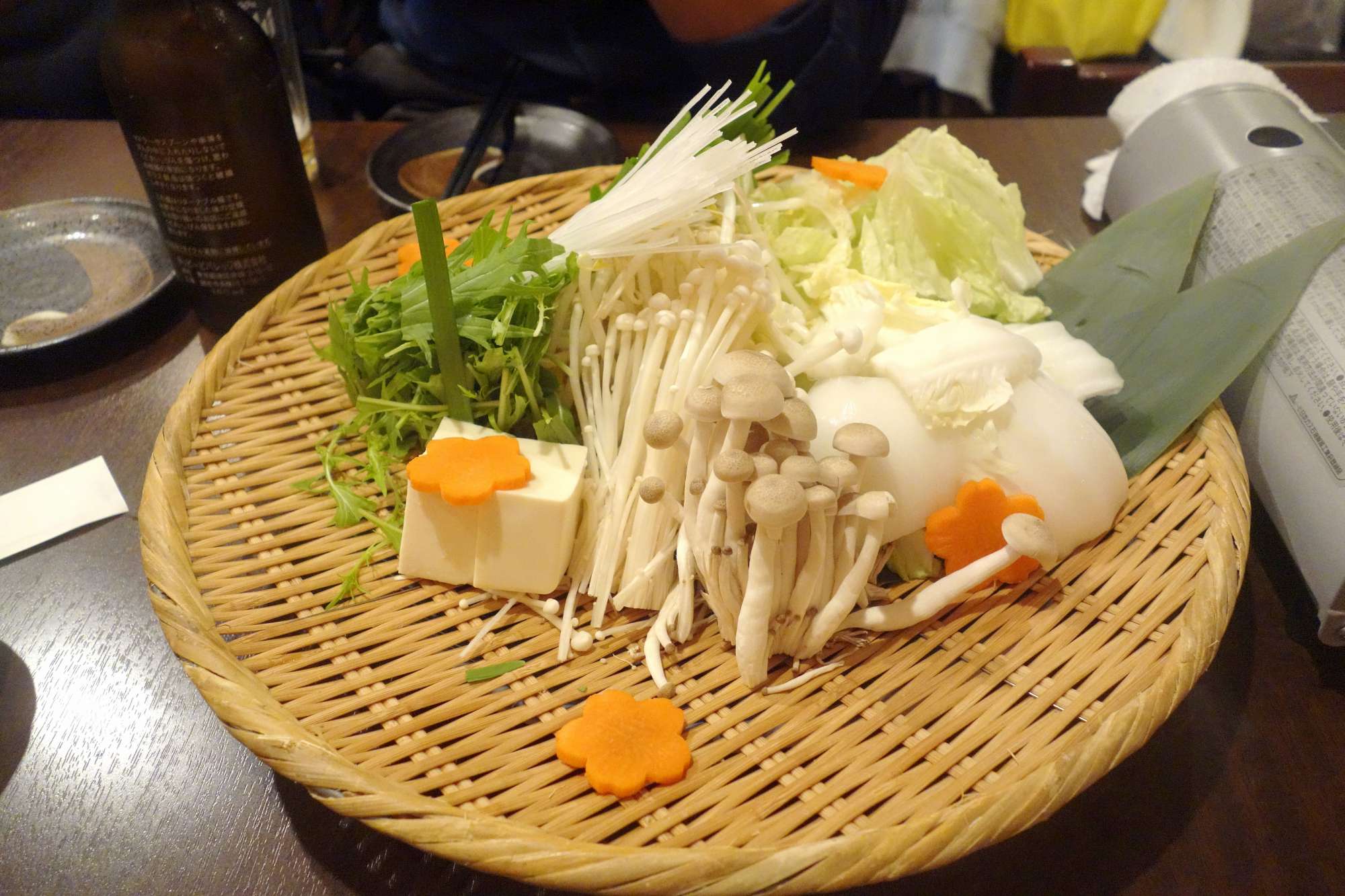続いてはメインの鍋料理として真鯛しゃぶしゃぶ1480円(1人前あたり)を注文します。まずは野菜が用意。