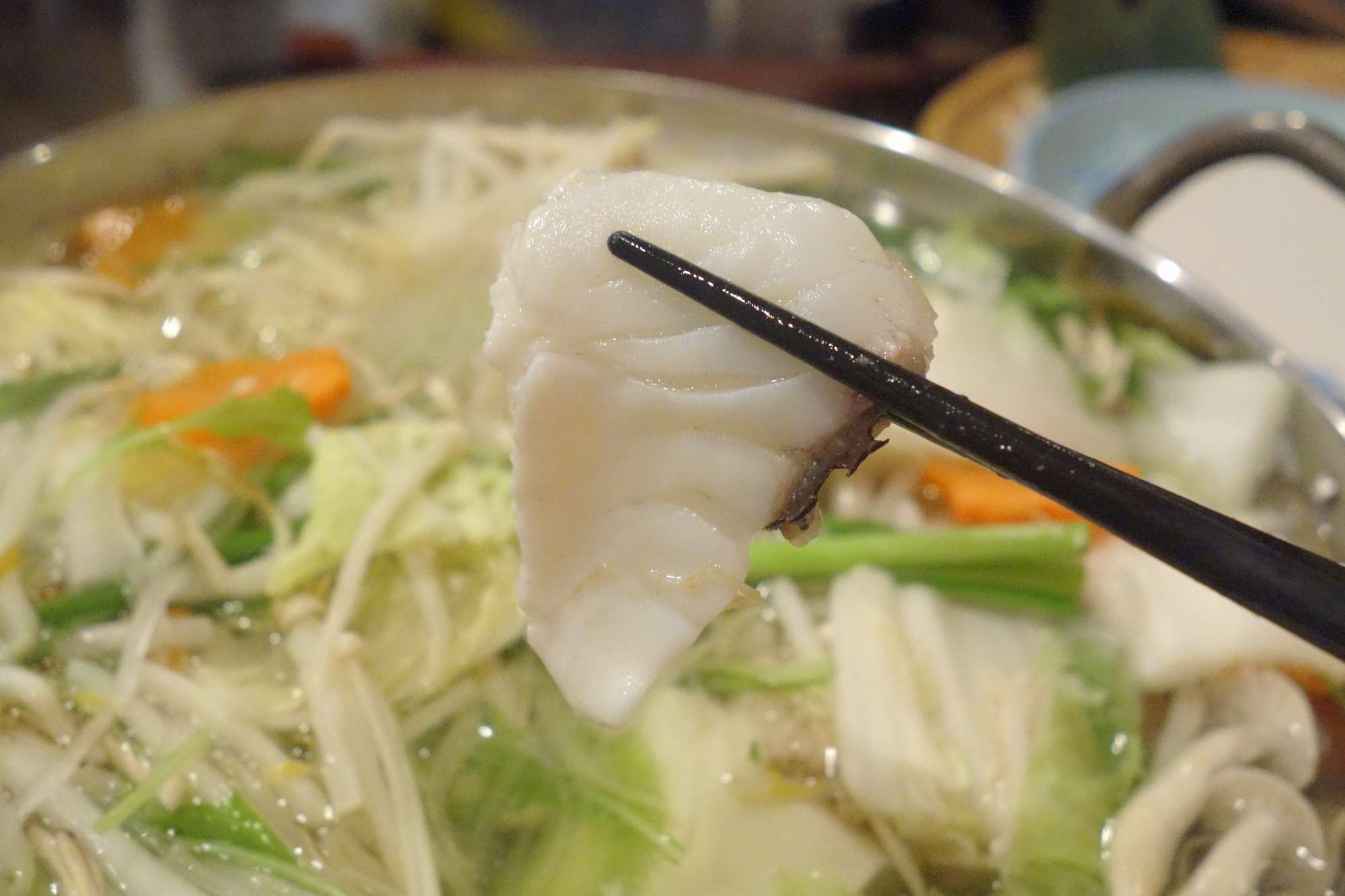 鍋に火がしっかり通った所で、真鯛の身をしゃぶしゃぶして食べてみると、肉厚な鯛のしゃぶしゃぶ思っていたよりも旨味がしっかり感じられて美味しいです。