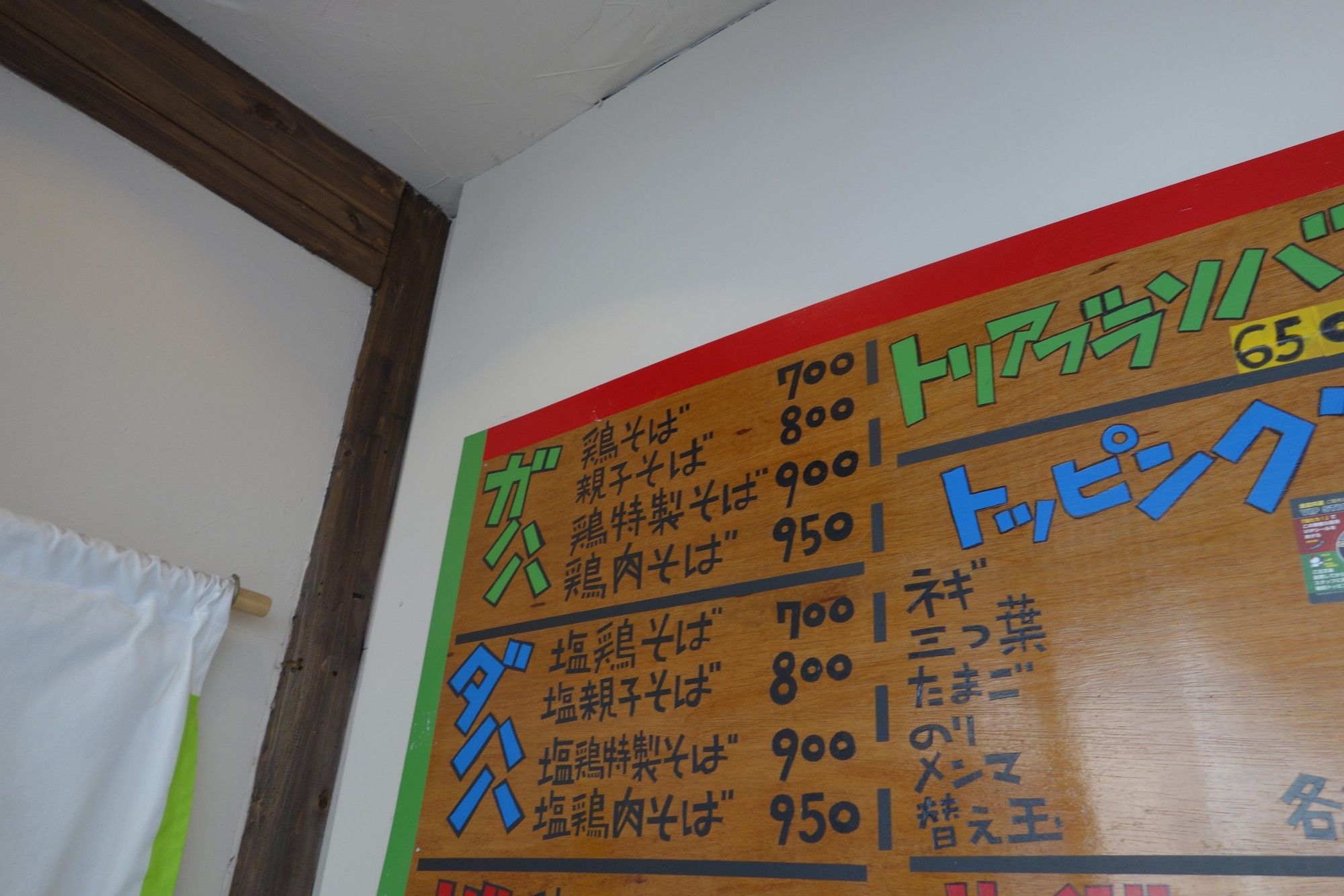 鶏そば系メニューやトッピングメニュー