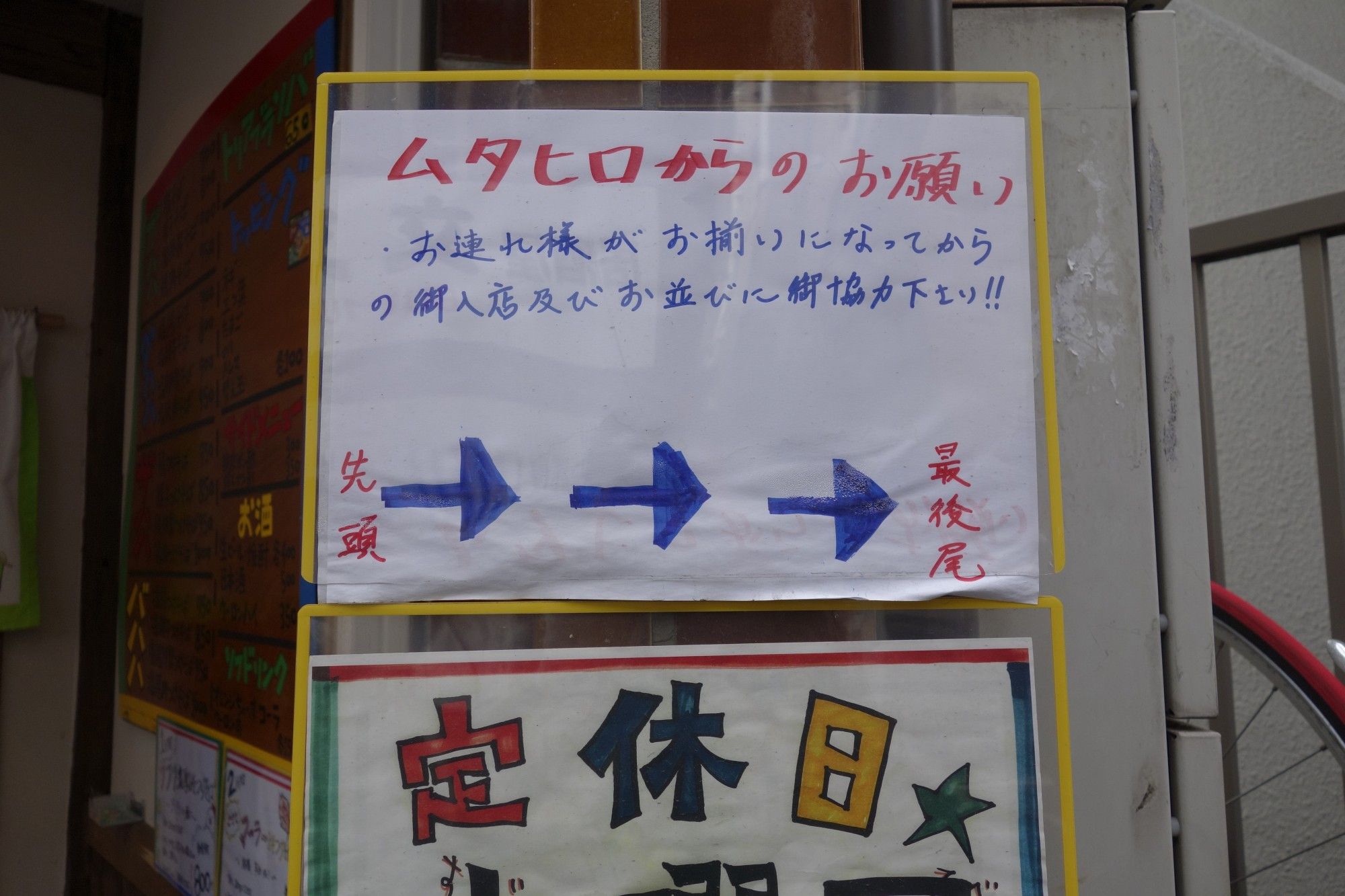 ほどなくして看板の前まで列が進むと、定休日は水曜日とありました。