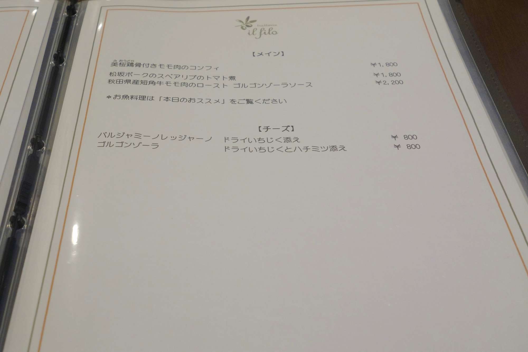Trattoria il filoは曙橋駅チカなイタリアンです。