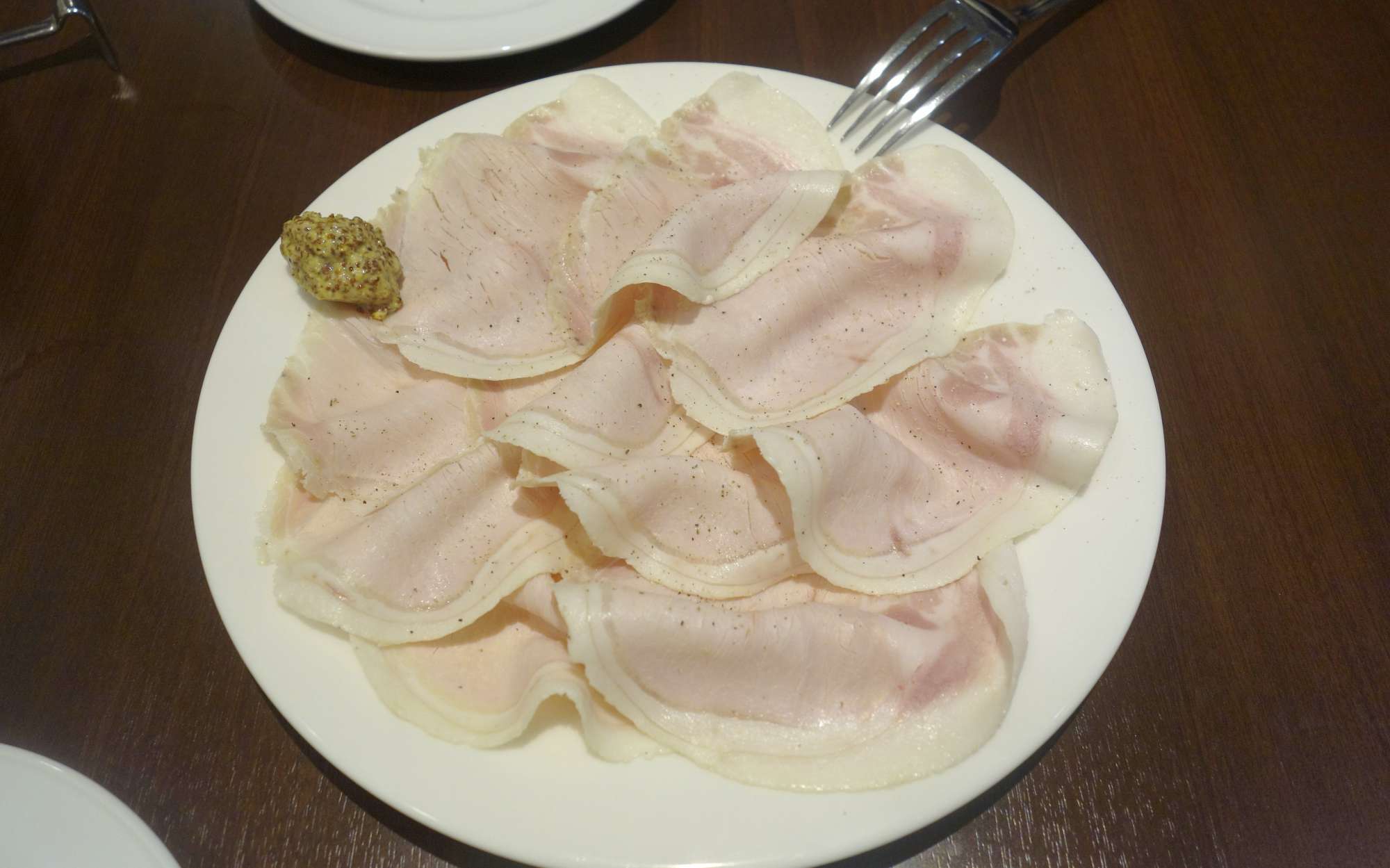 4日掛けて作ったと案内があった自家製ロースハムは旨味が濃くて美味しく、若干油の風味が強めだったこともあって、ハムに添えられたマスタードとの相性は抜群です。