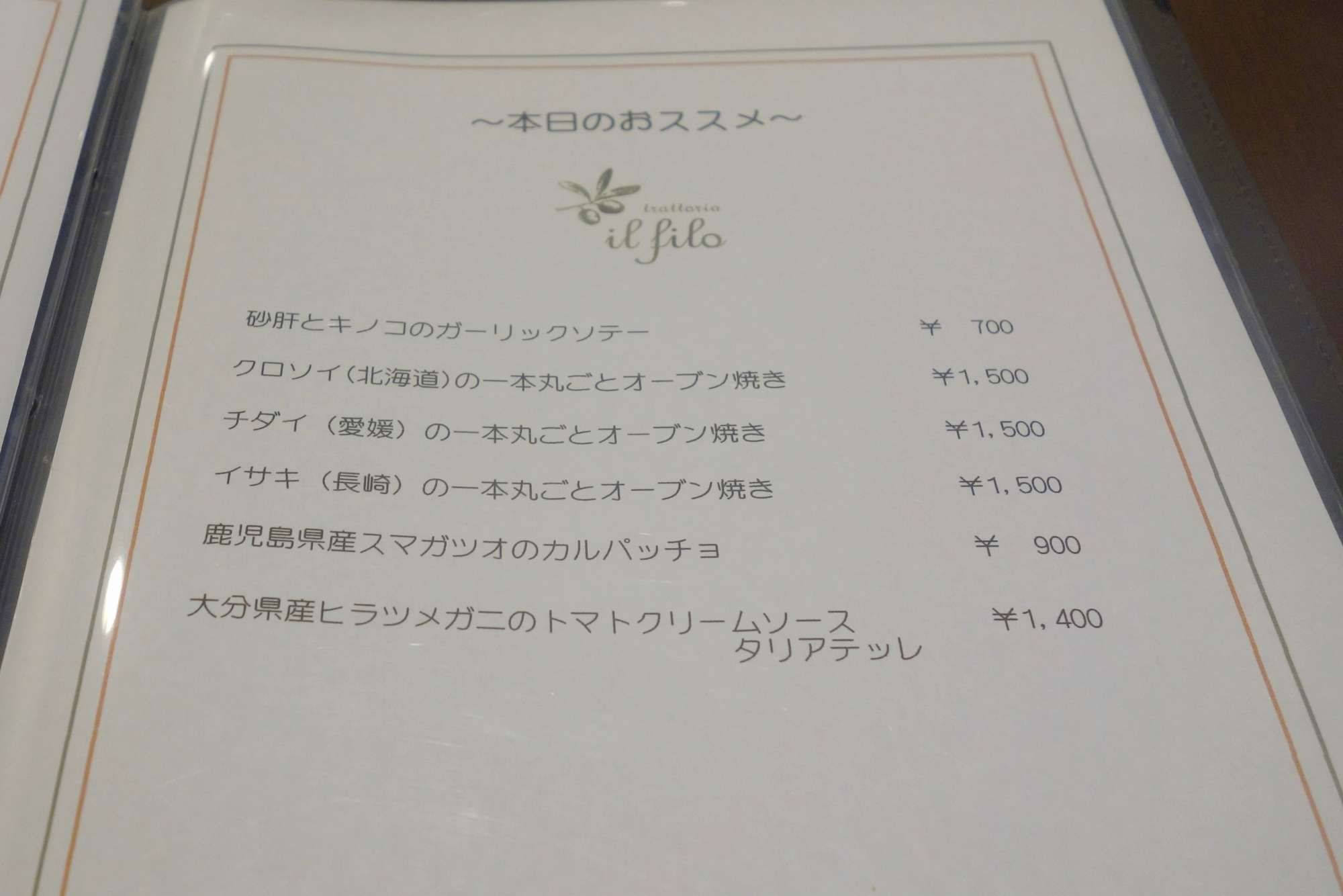 たまに行くならこんな店 時間はかかるが魚のオーブン焼きは肉推しのこのご時世には新鮮だった「Trattoria il filo」はグルメタウン曙橋駅エリアにある都内の中の小さなおうち的なお店です