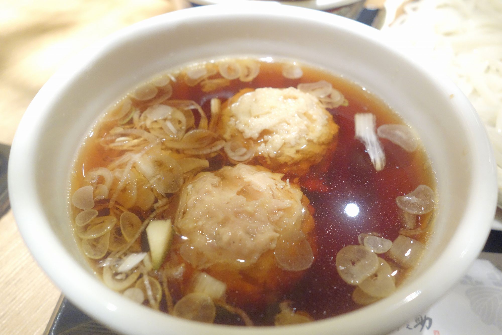 つけ汁には、大きな鶏団子がたっぷり!