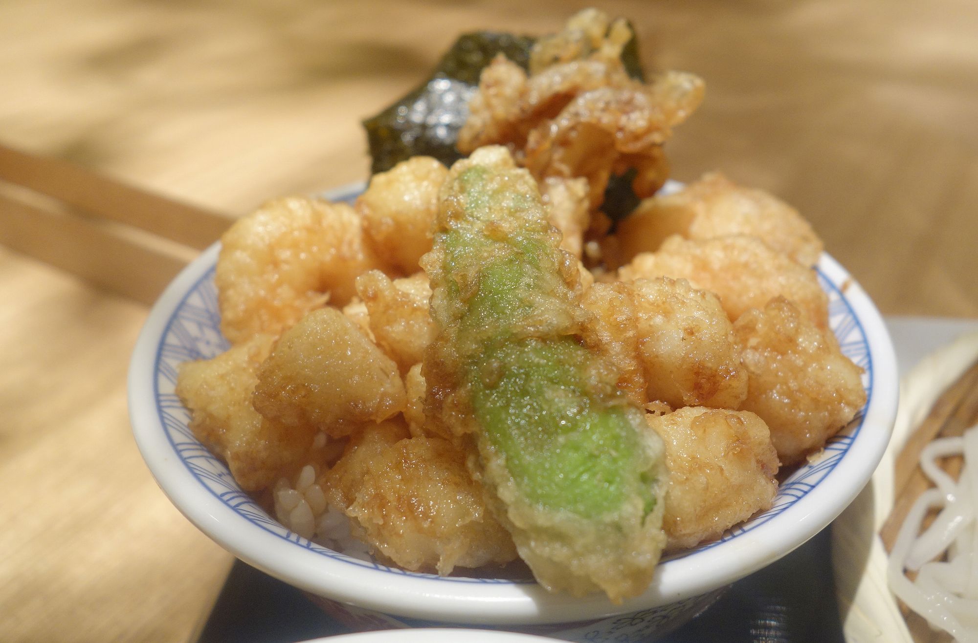 天丼の具は全て美味しく楽しめましたが、一番美味しく感じたのはプリプリとした食感の海老と貝柱でした。