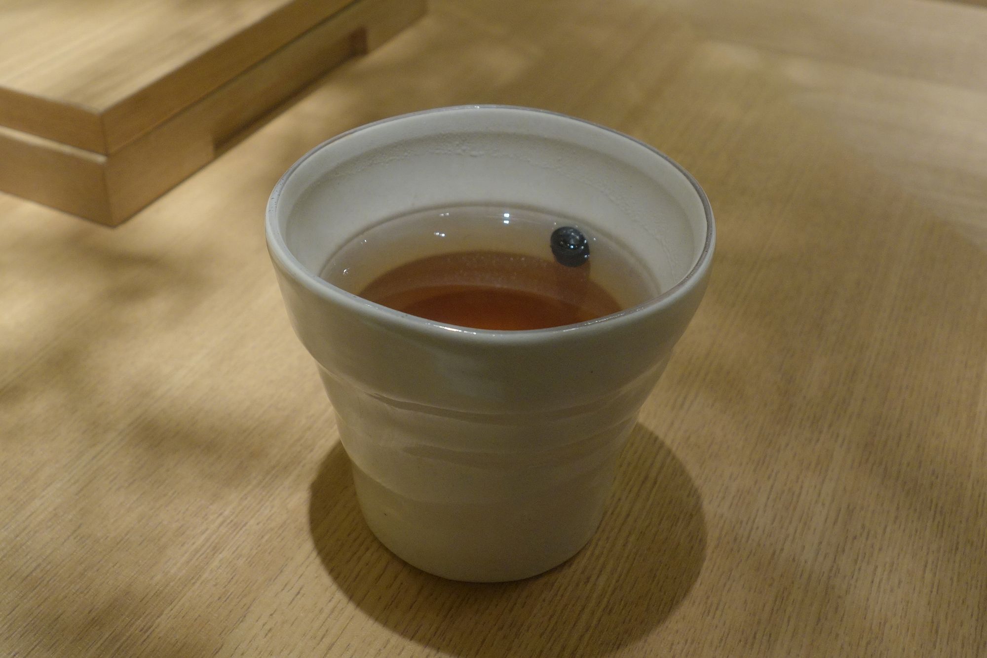 今回は稲庭鶏つくねうどん冷つけの天ばらめしセット1430円を注文。料理が出てくるまでの間、しばし豆茶を飲んで待つことにしました。