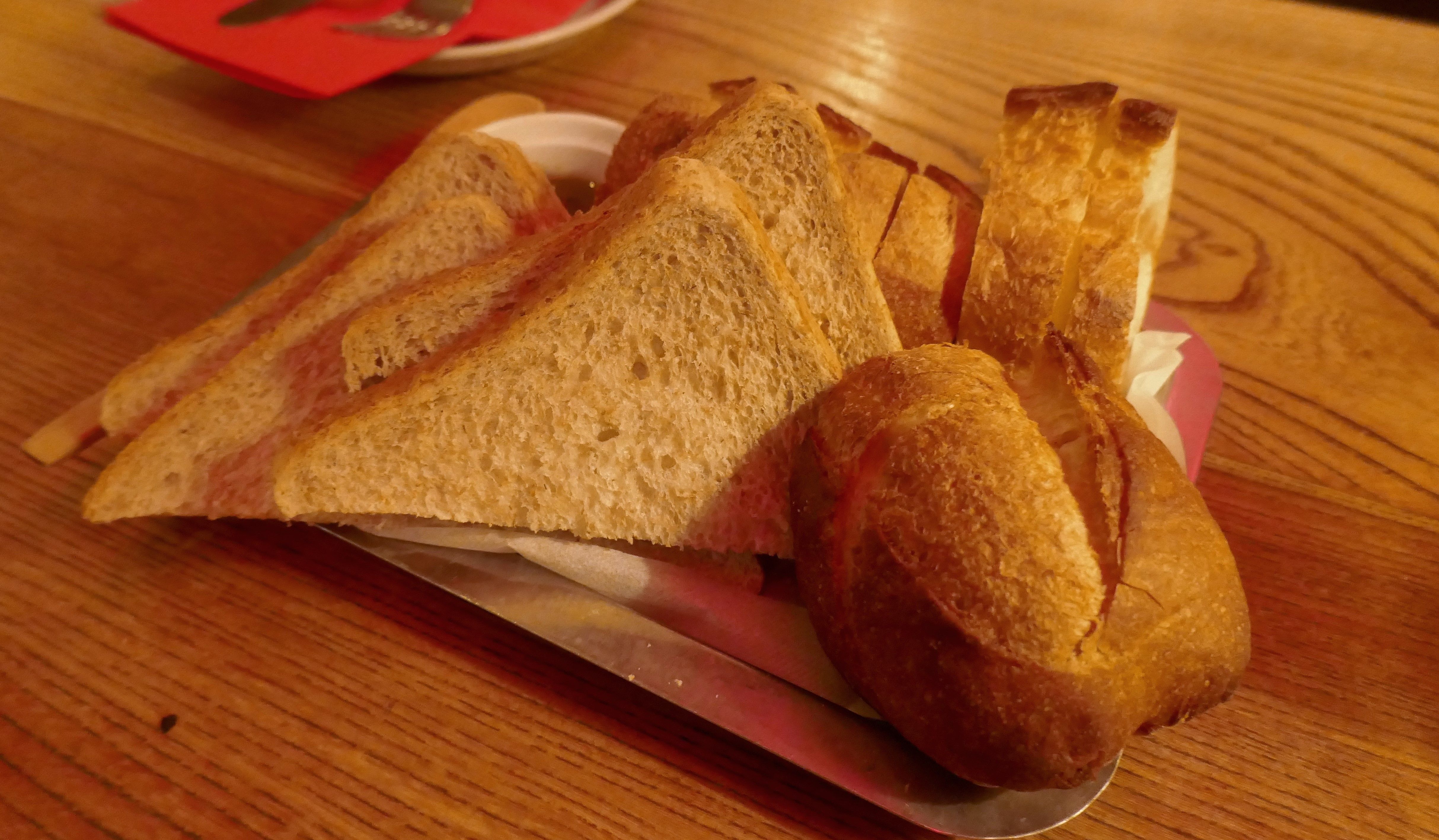 全粒粉パン、バケットなどが盛られており、特にクープの力強い食感が効いたバケットがウマー!