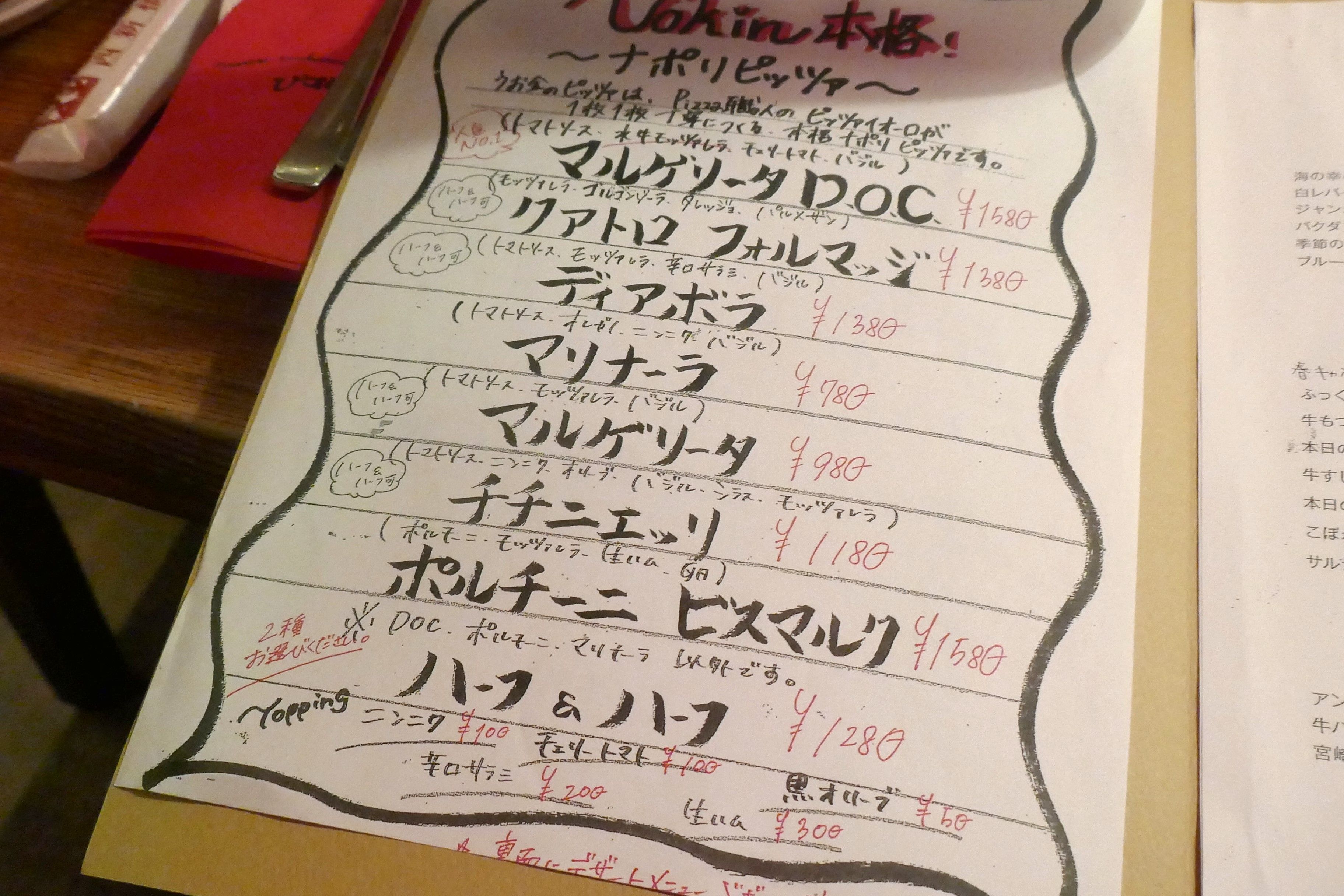 UOKIN系で唯一らしい各種ピッツァメニュー
