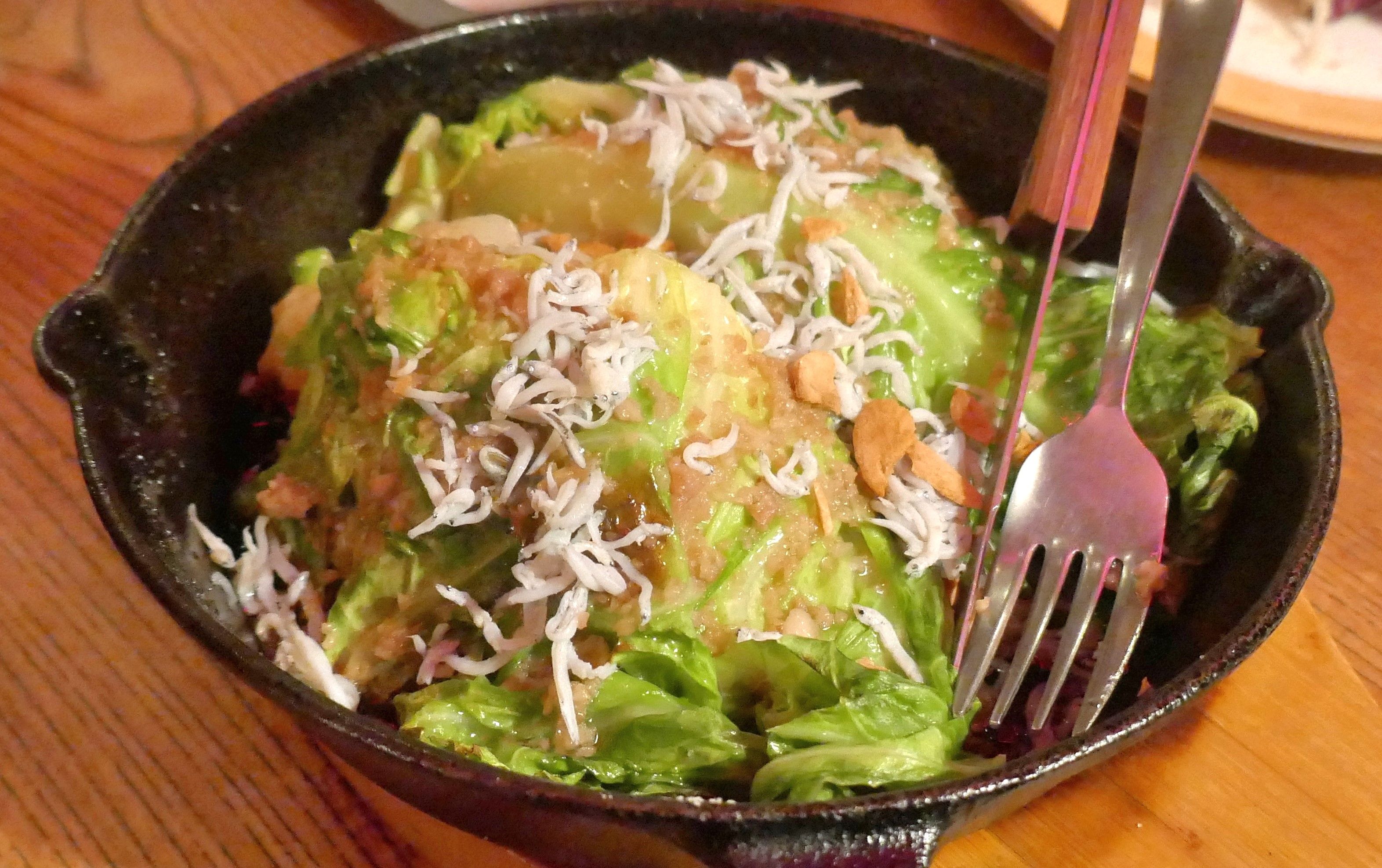 しらすの塩気とにんにくのコク、みずみずしく甘いキャベツの風味が絡みあう「春キャベツのステーキ」780円を合間に挟んだあとは