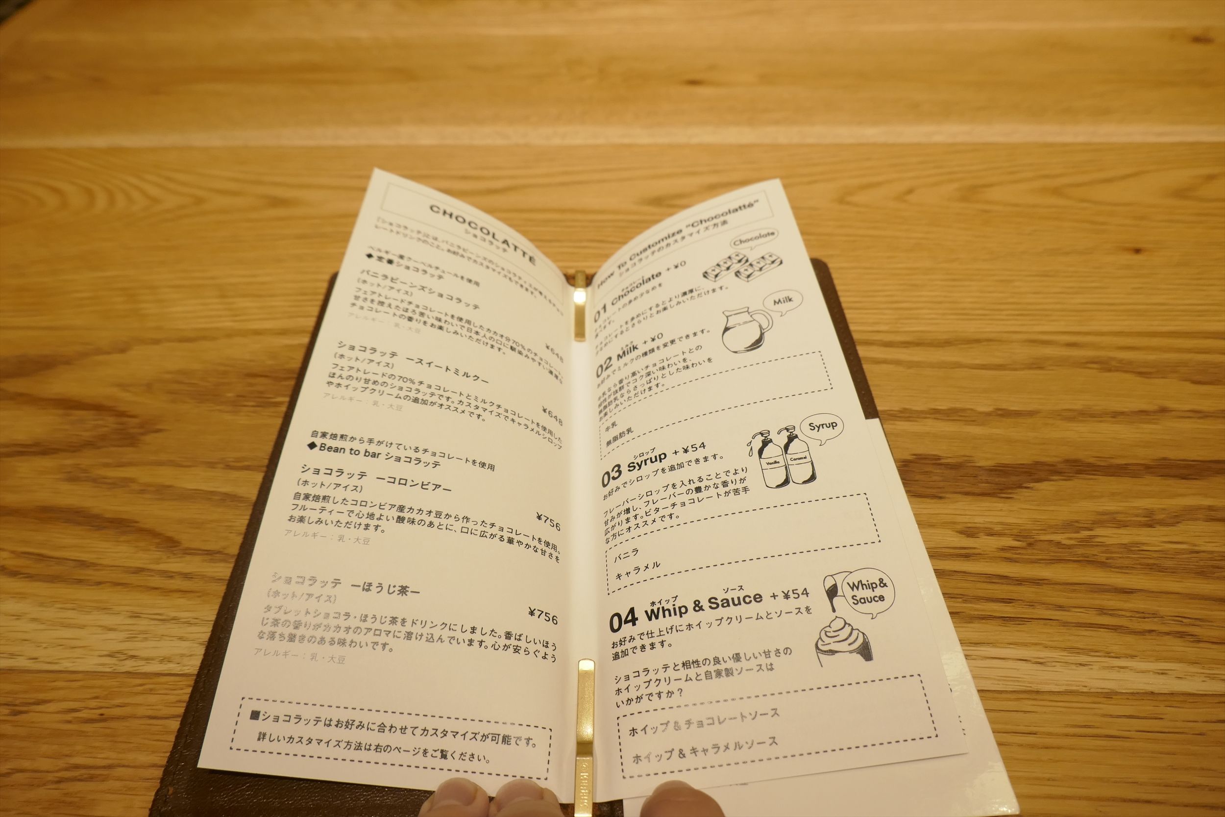 チョコレートドリンク、トッピングメニュー