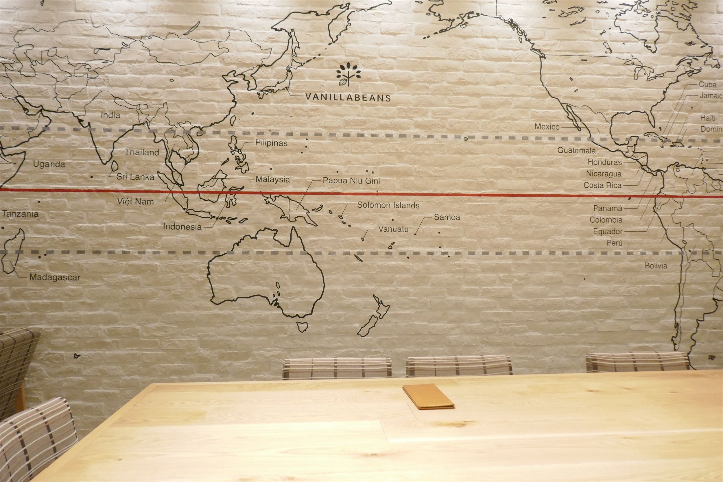 しばし赤道、カカオベルトが印字された世界地図を見ながら注文したドリンクを待つことにします。