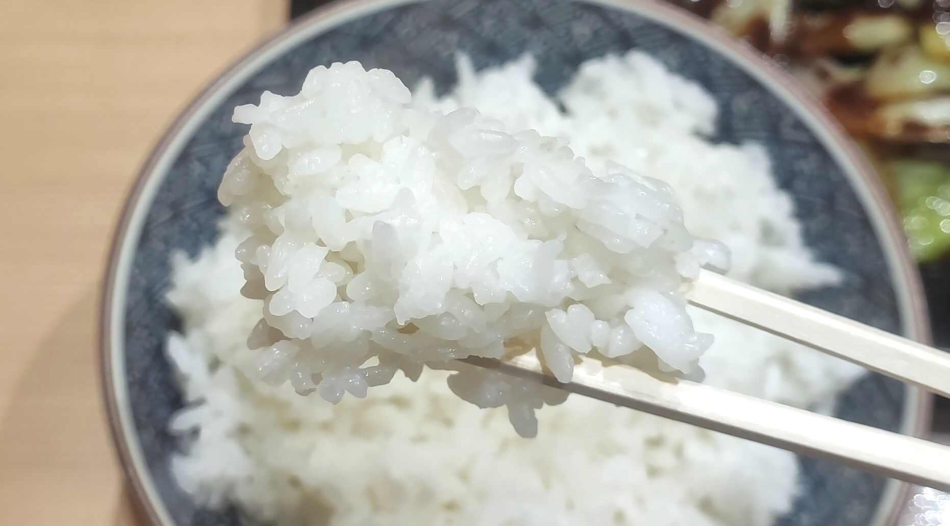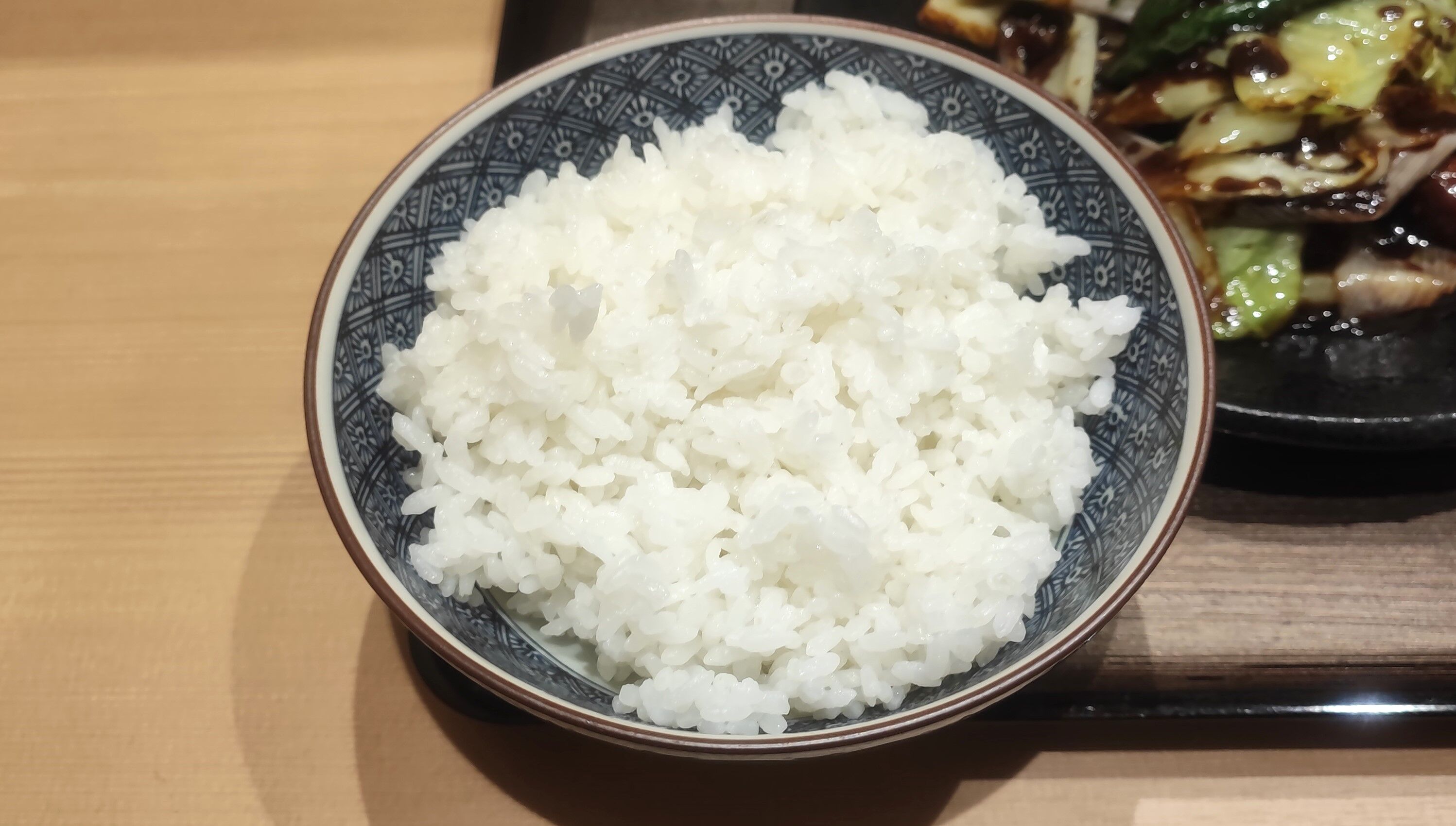 ご飯は固めの炊き加減で、濃いめな味付けで汁気の多い回鍋肉との相性もバッチリ!