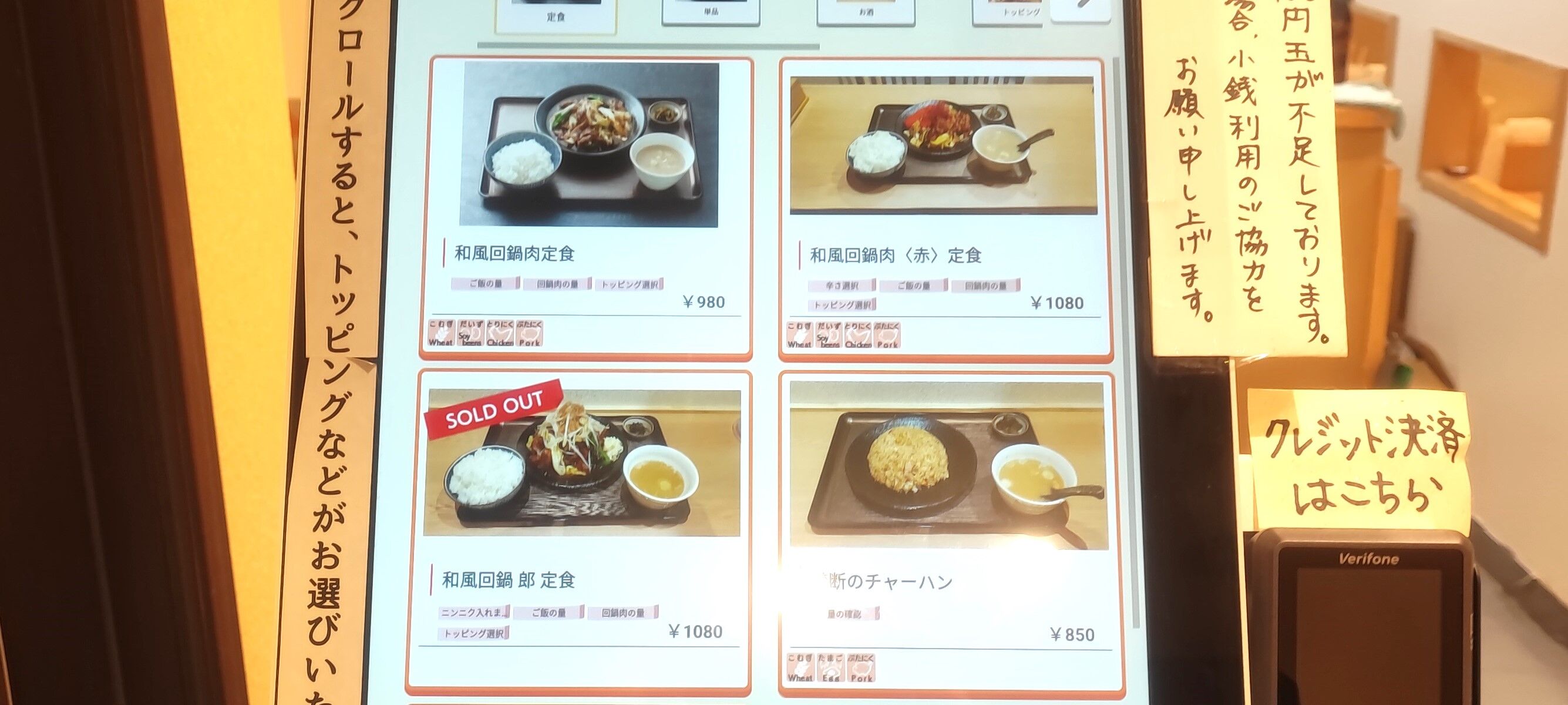 ちいかわ劇中にも登場した「郎」のラーメンを思わせる定食もありましたが、残念ながら売り切れていたのでこの日は「和風回鍋肉定食」980円をセレクト!