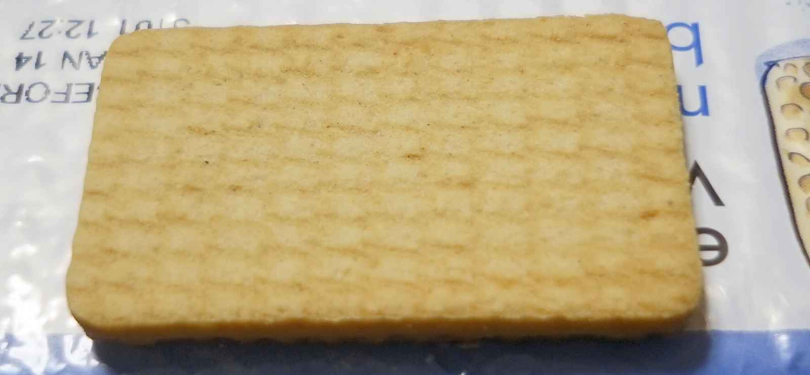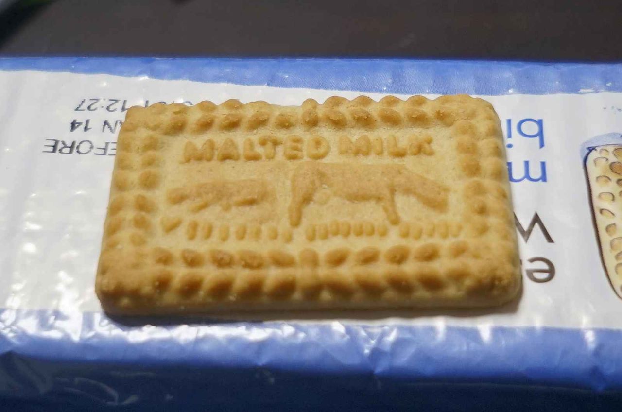 という事で、包みを開けてビスケットを取り出すと、表面にはMALTED MILK(とろけたミルク)