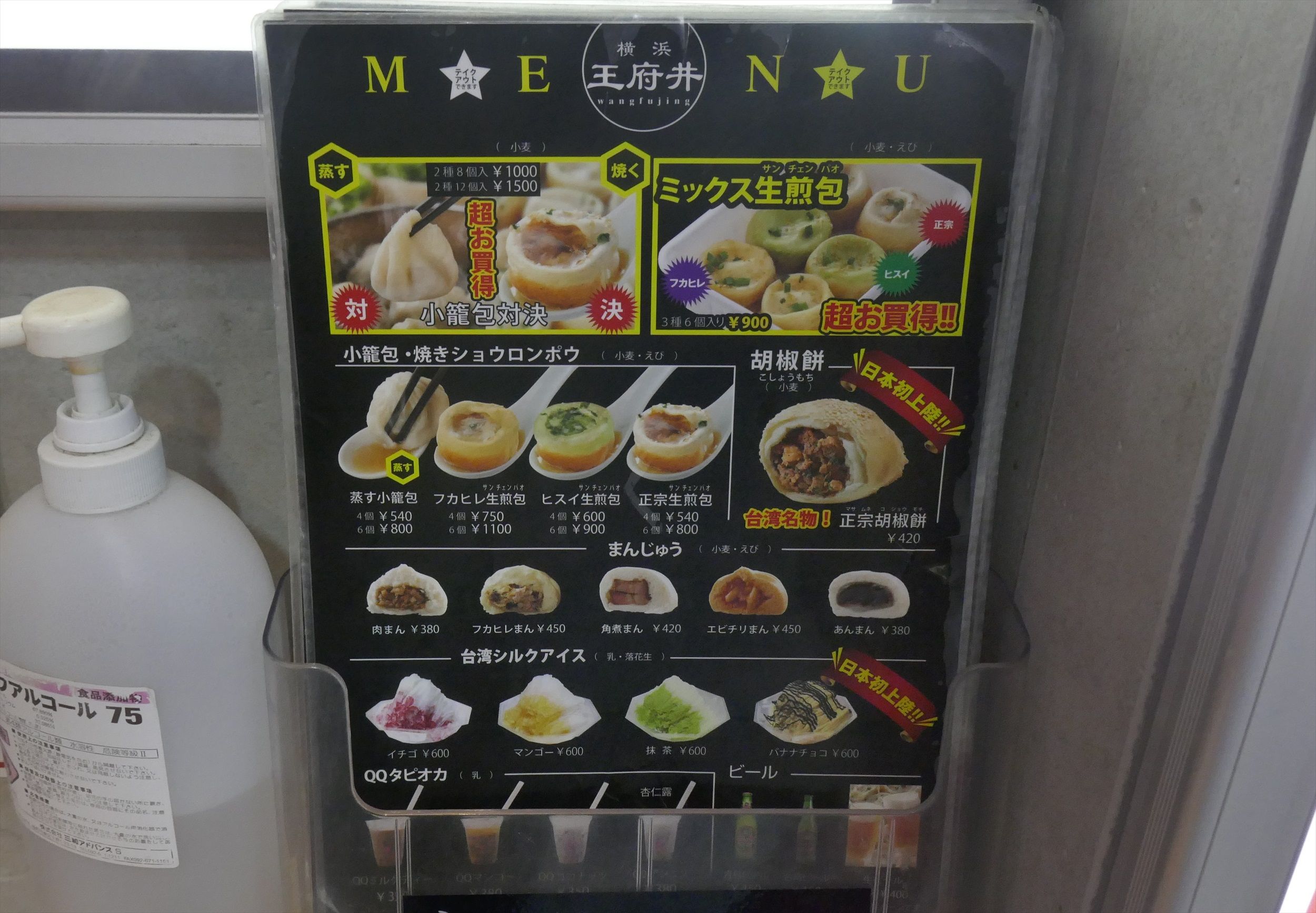 「王府井 横浜中華街 2号店」に行ってみると、小籠包、焼き小龍包こと生煎包、胡椒餅、各種まんじゅう、スイーツなどがたっぷり!目移りしてしまいます!
