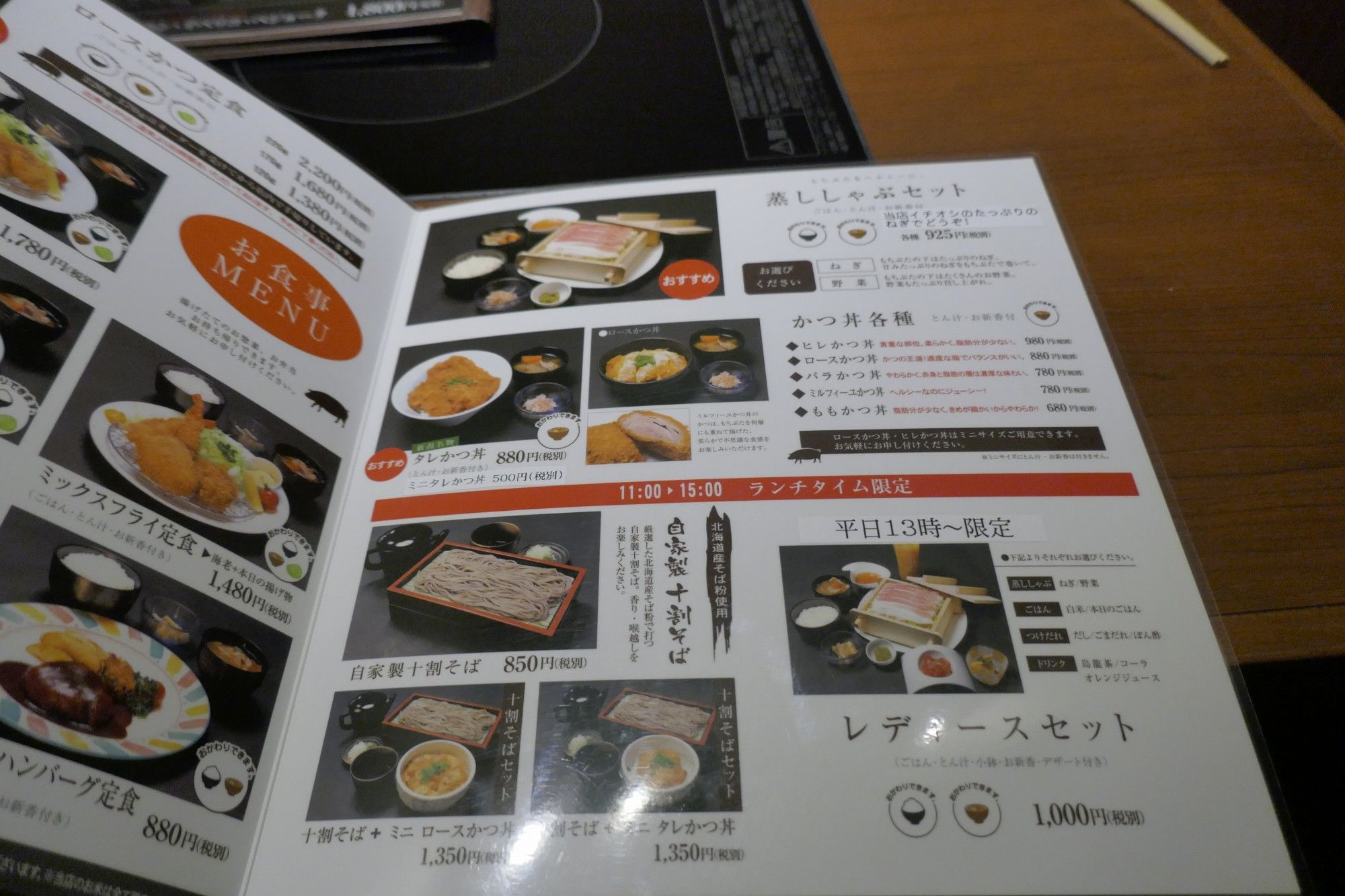 蒸ししゃぶセット、カツ丼、ランチタイム限定のそばメニュー