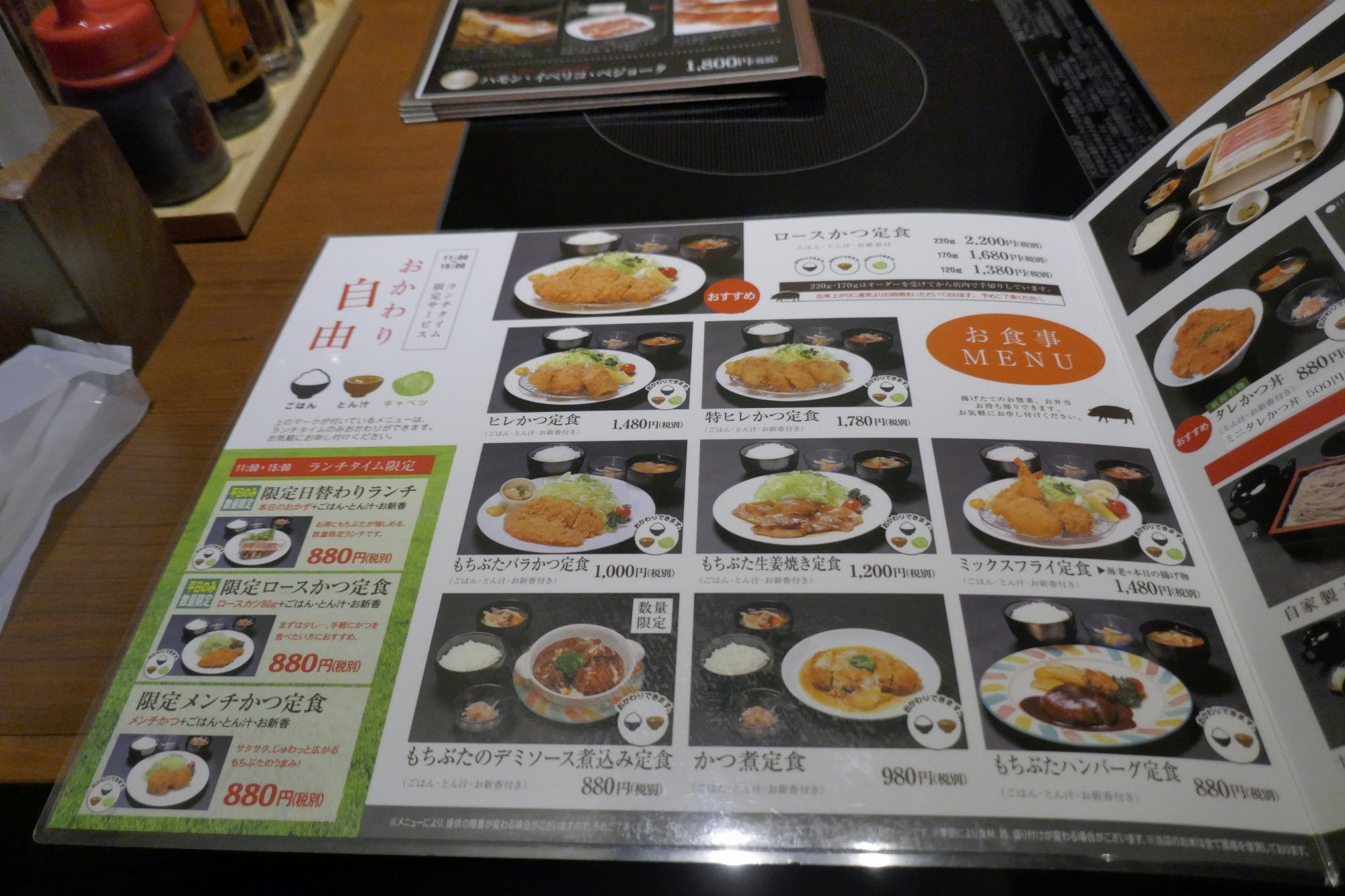 和豚もちぶたを使ったメニューはロースカツ、ヒレカツ、バラかつ、生姜焼きなどの定食メニュー