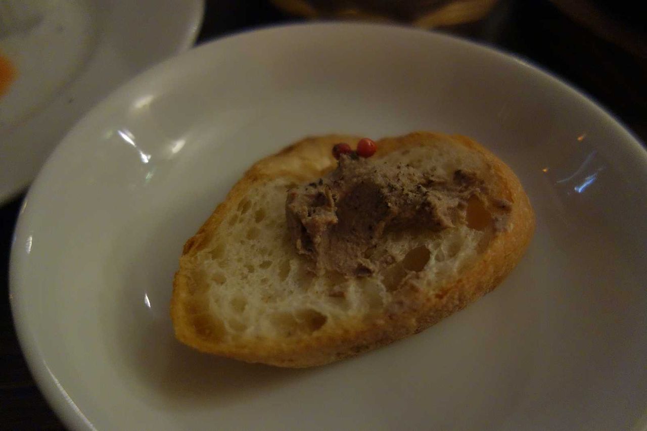 パテはお通しのパンにつけて食べてみると、まろやか風味で美味しく