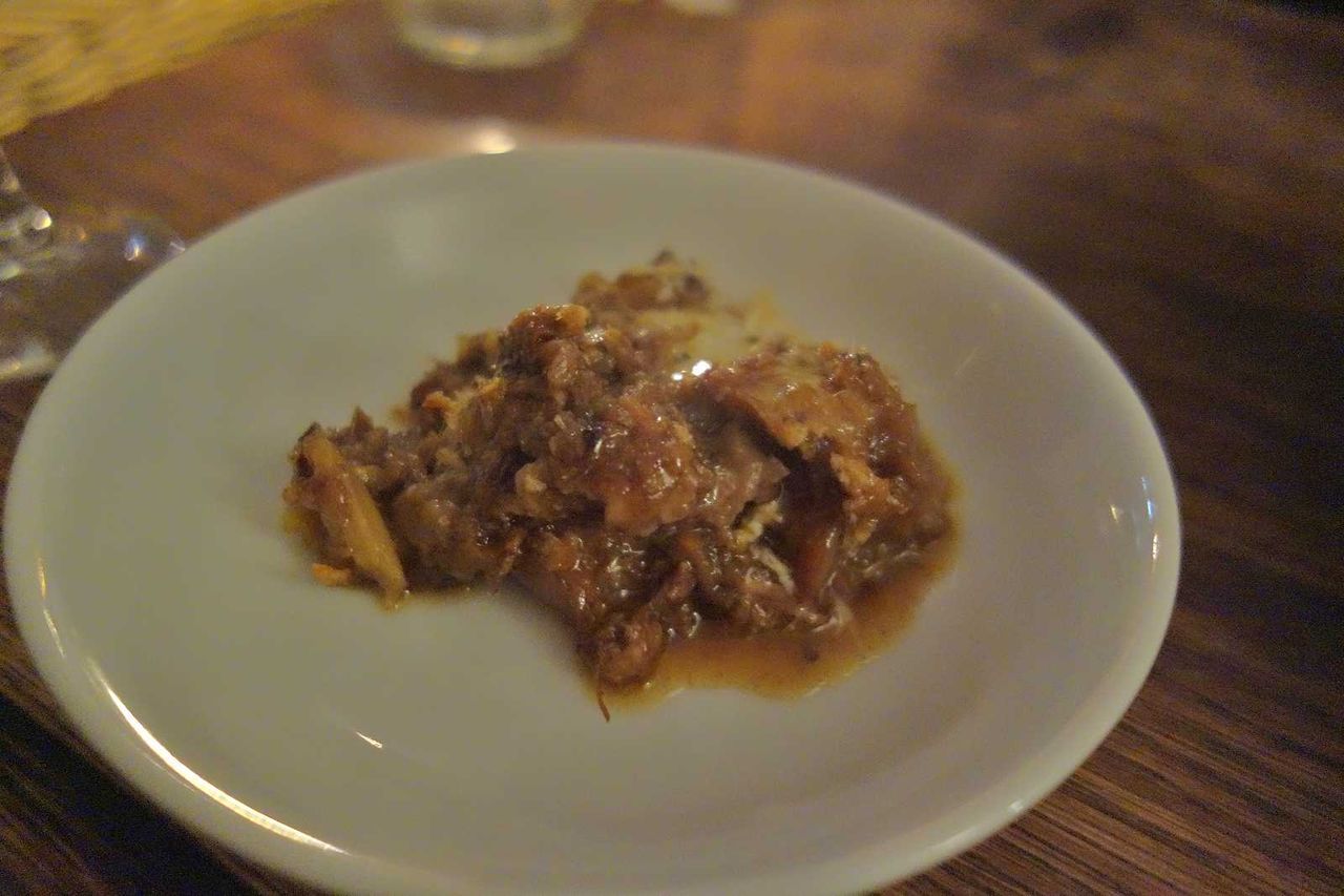 煮こまれてとろりとした牛筋の旨味の相性が良く、今回頂いたメニューの中では