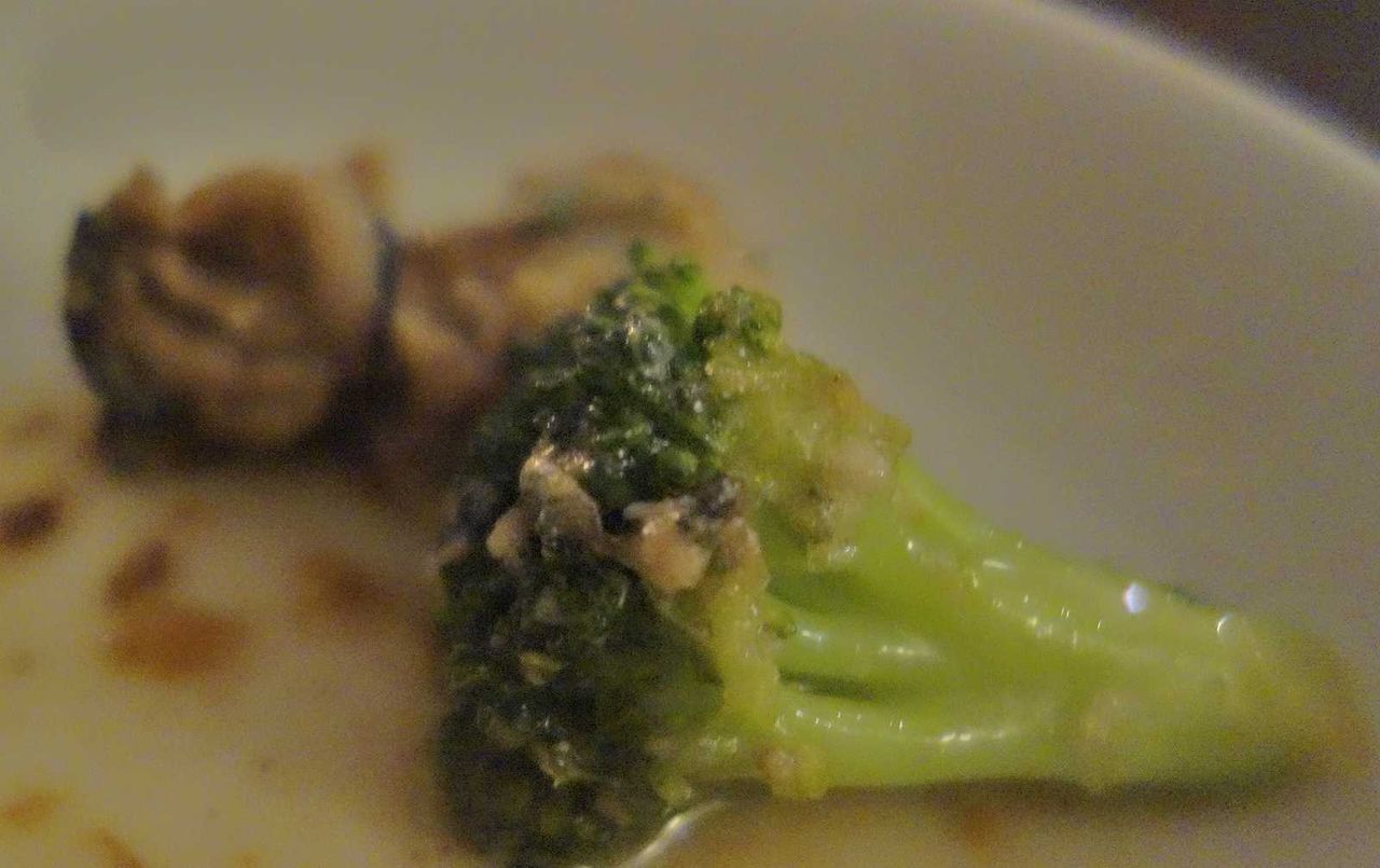 牡蠣と共にブロッコリーが投入されたアヒージョは