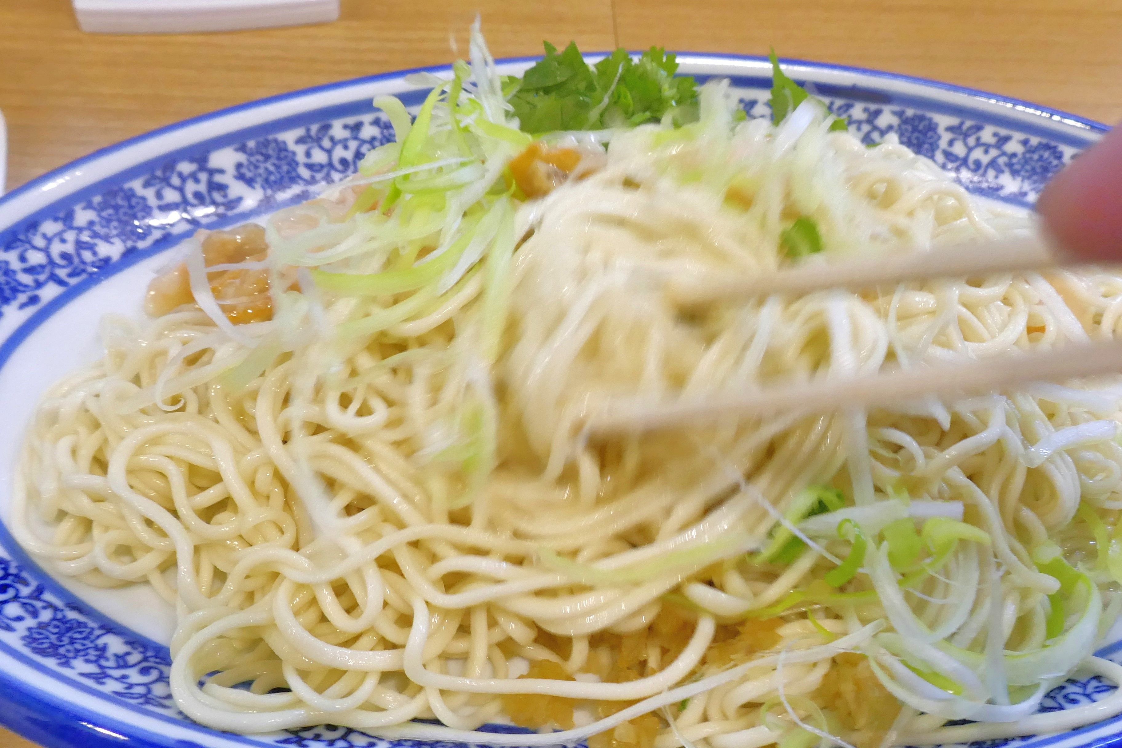 食べる前にしっかりかき混ぜて麺にタレや具材を絡めていきます。