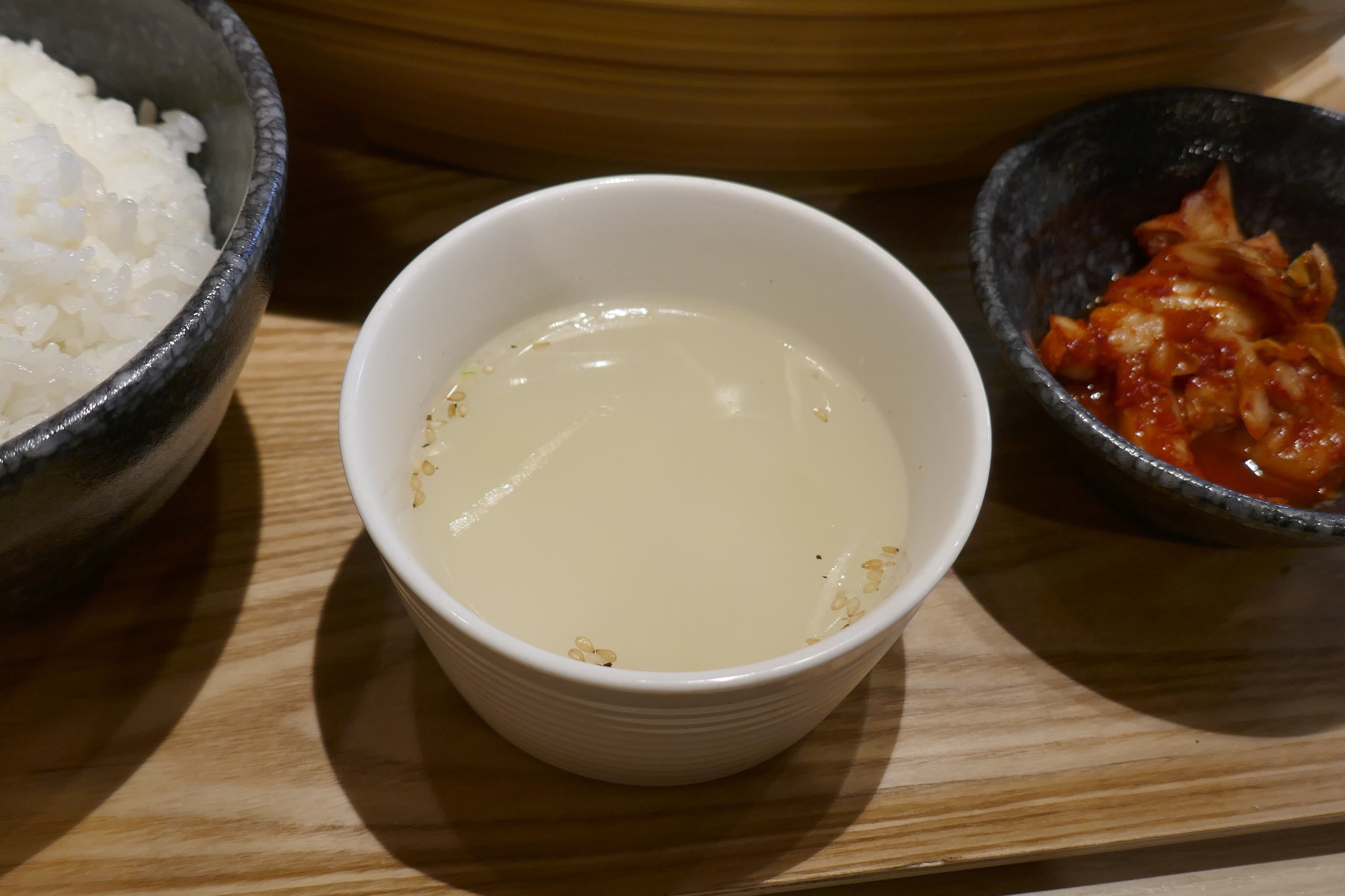 定食メニューにつくスープは淡麗な飲み口ながらも、旨味がガツン!と効いているのが吉!塩気もちょうどいい塩梅で塩辛さも皆無なのが好印象!
