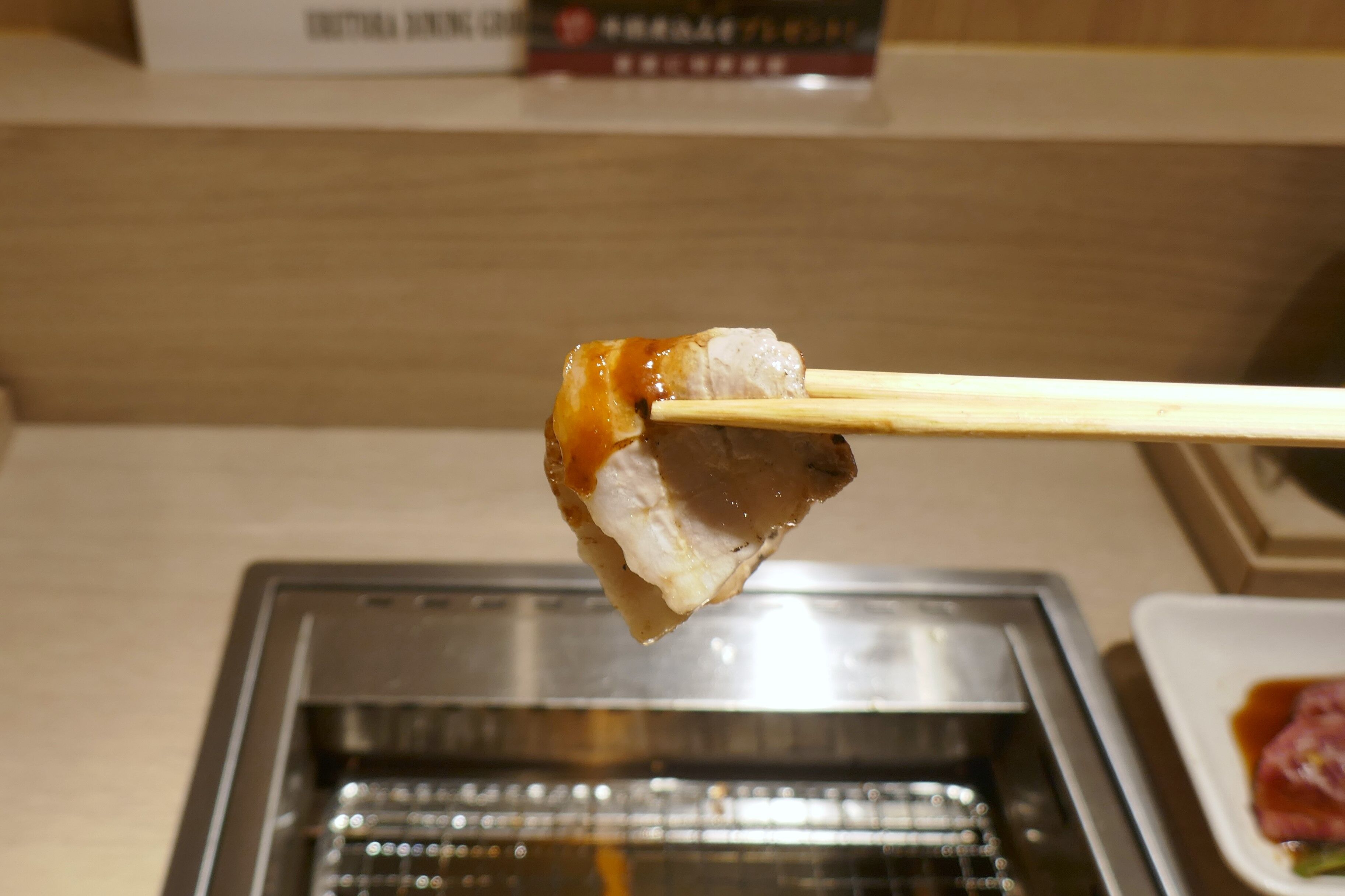 三元豚カルビは味噌ダレ付きな状態で出てくるので、焼く際には味噌ダレが焦げないように弱火で焼いていきます!