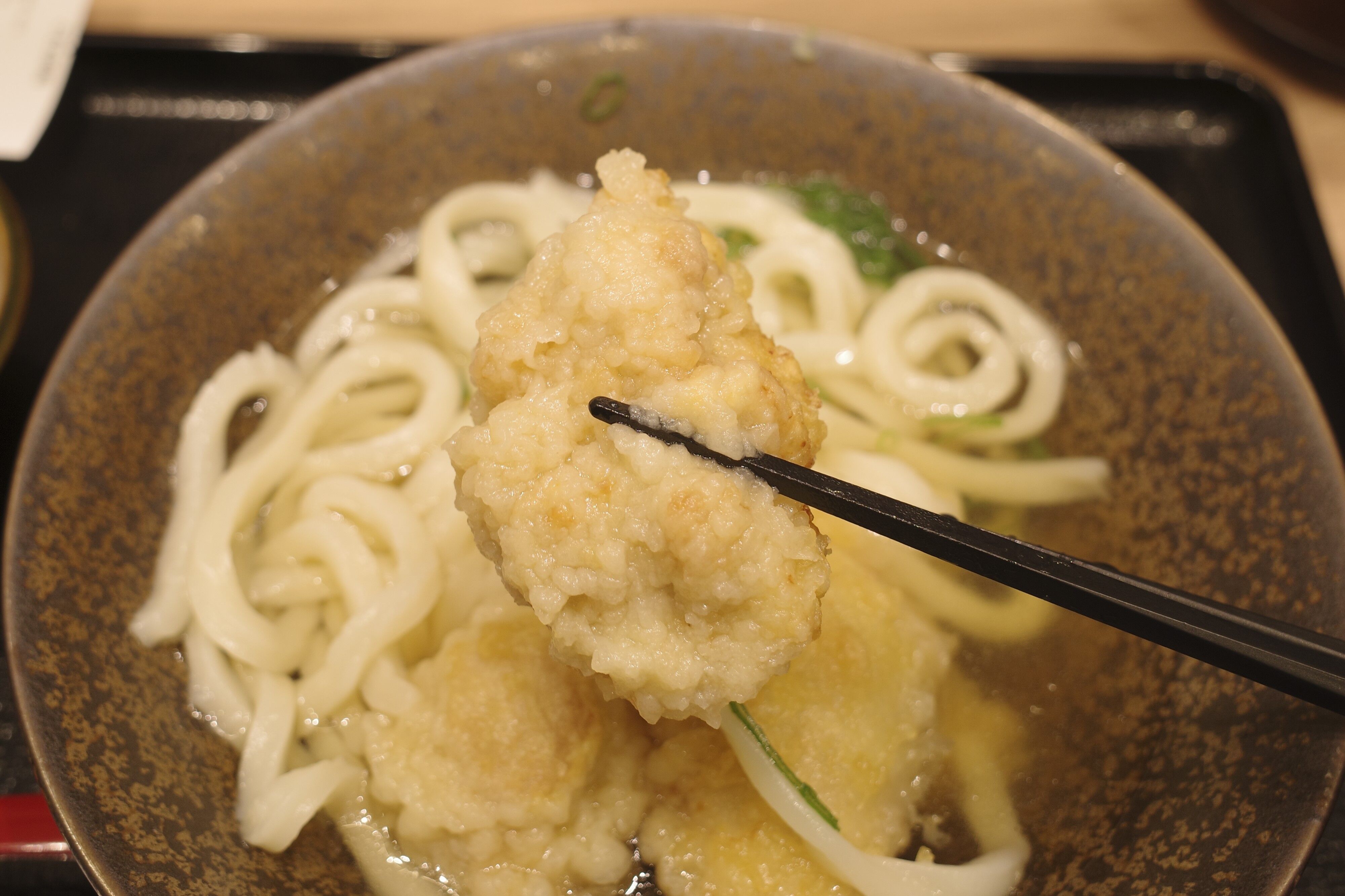 たまに行くならこんな店 柏モディ1Fにオープンしたばかりの「山下本気うどん 柏モディ」で、上品な出汁の味とうどんのコシとツヤ、肉汁プッシャーな鶏天入りの「鶏天うどん」を食す