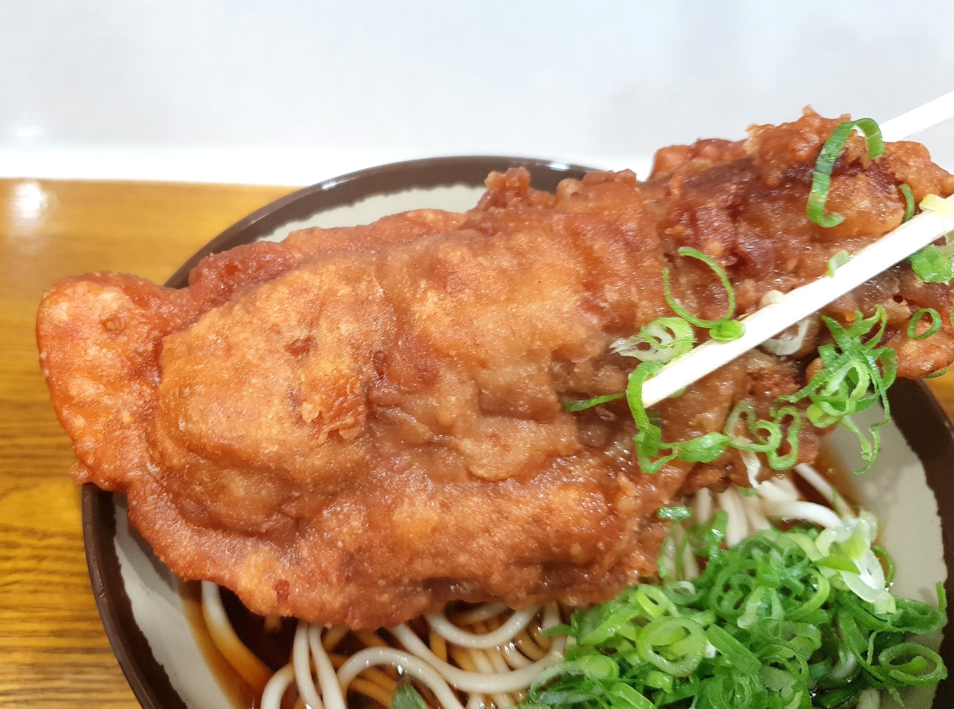 蕎麦は駅そばなのでチープな味わいかつ、関東風の醤油の風味とかつおだしが立った汁がマッチしていました。