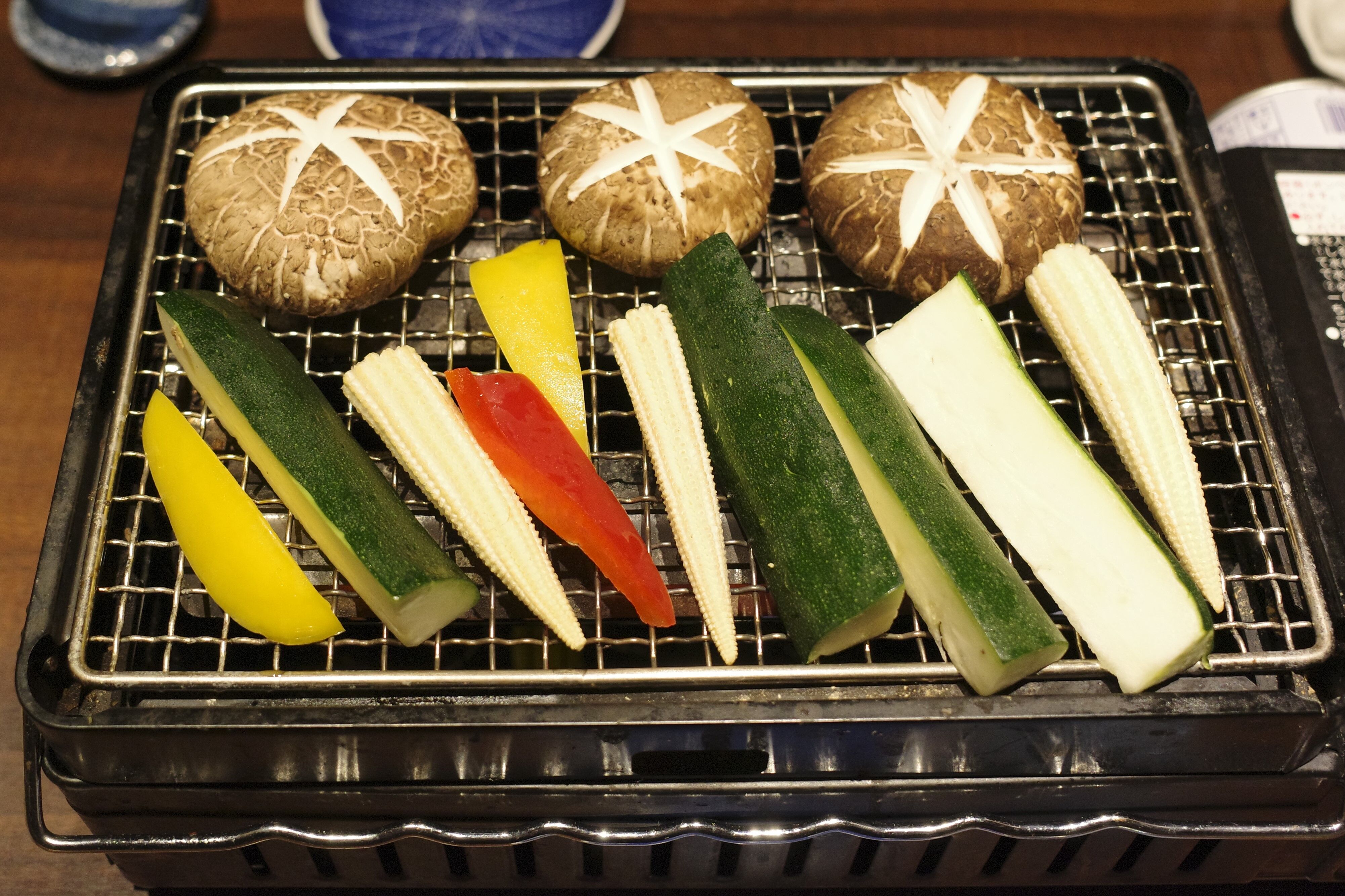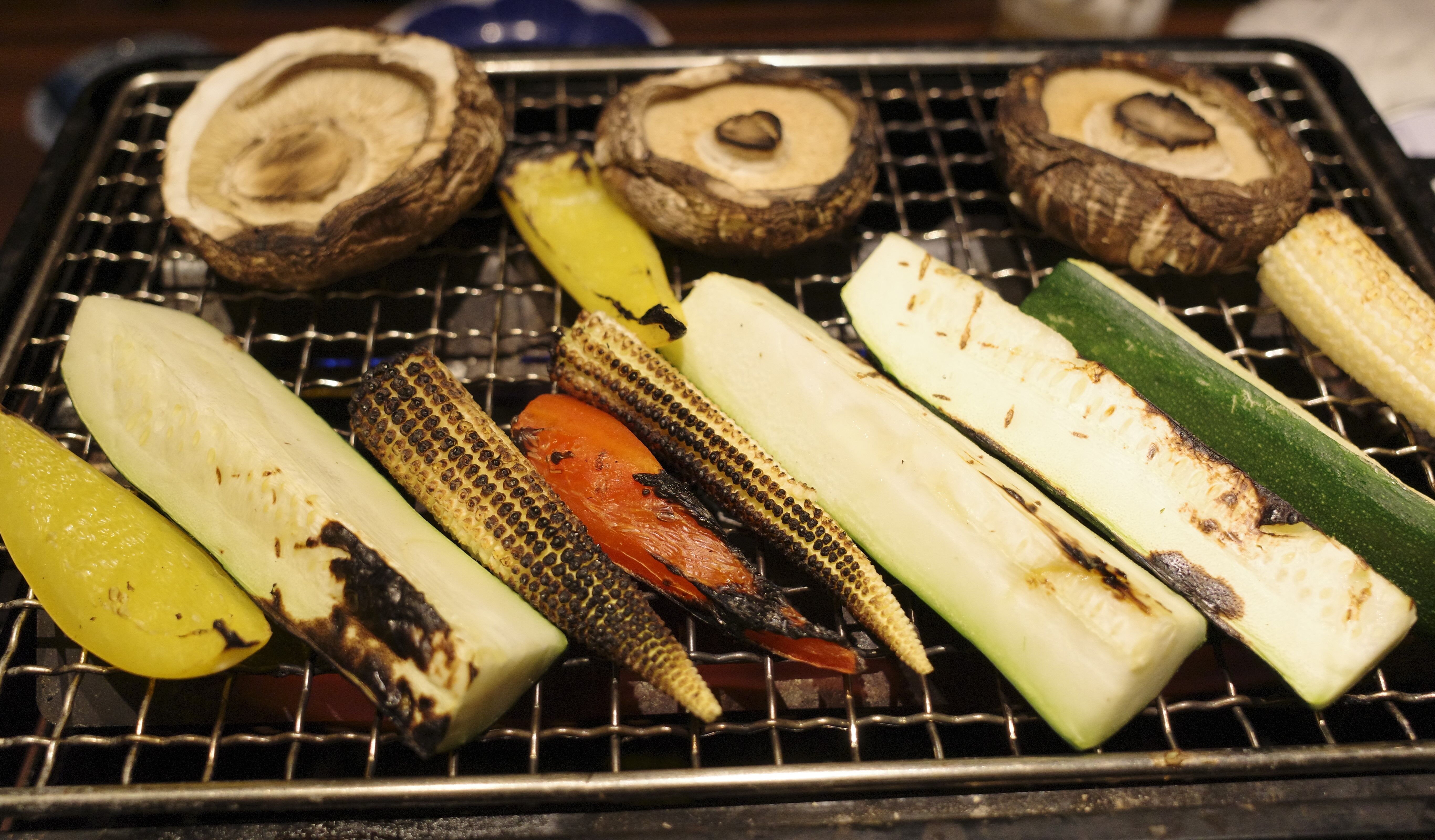 眼の前にあったコンロで旬野菜の盛り合わせを焼いていきます!